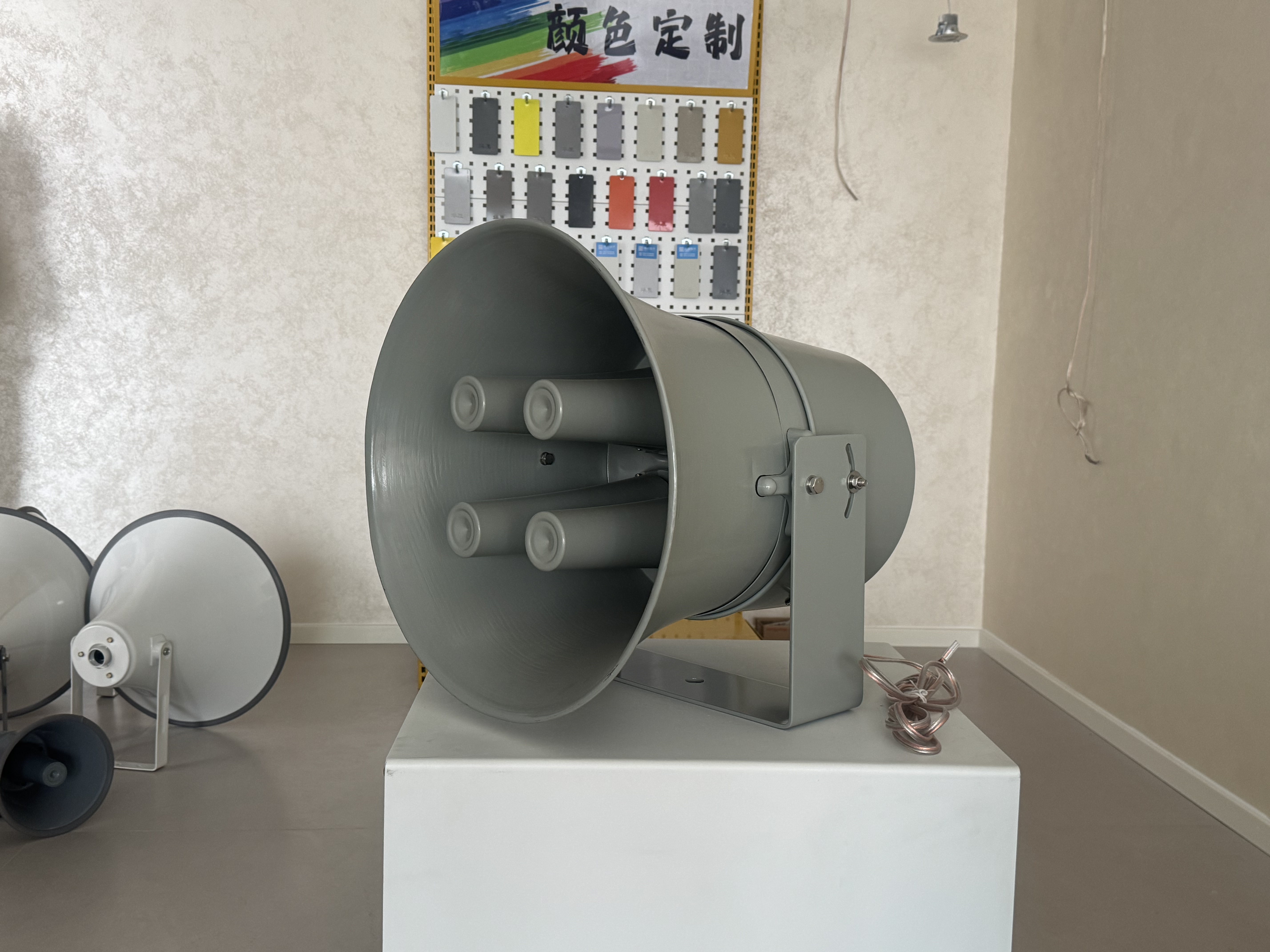 户外的喇叭是公司的核心产品之一。它适用于公园、广场、景区等大型户外场所,能够为人们提供清晰、响亮的声音。这种喇叭具有防水、防潮、防晒等特点,能够适应各种恶劣的户外环境。即使在下雨天或者阳光暴晒的情况下,也能正常工作,保证声音的传播效果。