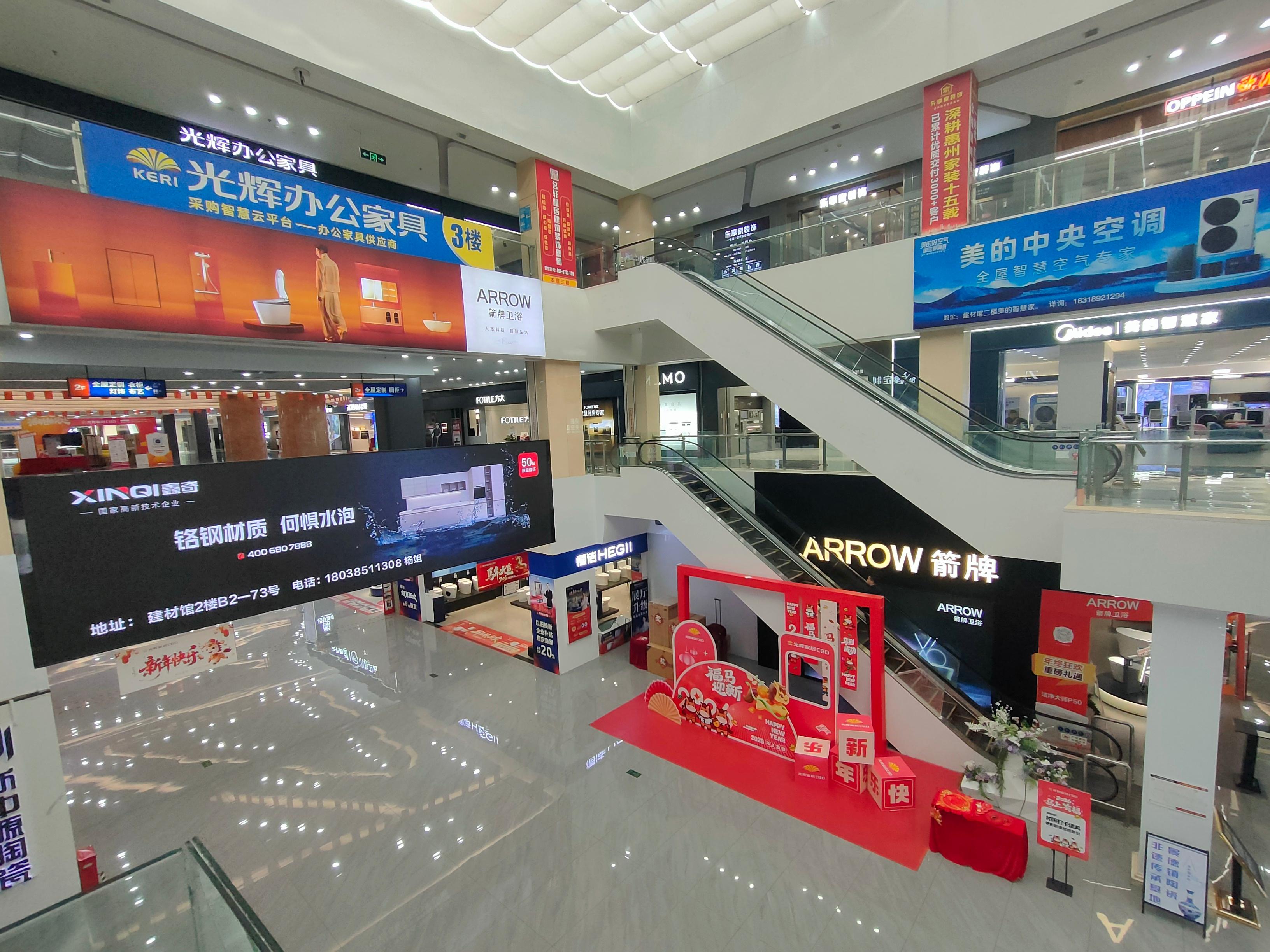 惠州光辉家居具有全品类产品整合能力,覆盖建材、家具、家电、全屋定制、软装、设计、工程全链路。它主要有三大优势:一是拥有一线品牌矩阵,芝华仕、顾家、慕思、欧派、科勒、东鹏等5000 + 国内外品牌汇聚于此;二是自有制造,拥有百宁床垫厂,自主研发生产核心软体产品;三是具备供应链与成本优势,通过工厂直采和批量集采,压缩中间环节,价格优势显著,同时36万㎡体量加上高频促销,摊薄了运营和推广成本,租金约为惠州同级别商场1/8,让利商户与消费者。