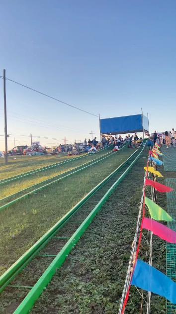 接下来重点介绍一下衡水诺迪冰雪器材有限公司的轨道滑草产品。其山地/山道/轨道滑草采用高强度金属车架 + 耐磨工程塑料外壳结构,轨道为全封闭镀锌 / 防腐钢管,车辆卡入式设计从根源降低脱轨风险;配备手动刹车 + 自动限速双重制动系统,搭配人体工学座椅、双点式安全带,保障滑行安全。轨道采用模块化拼接,可适配山地、草原等复杂地形,支撑结构稳固,抗风、抗雨雪侵蚀能力强,适应长期户外运营。