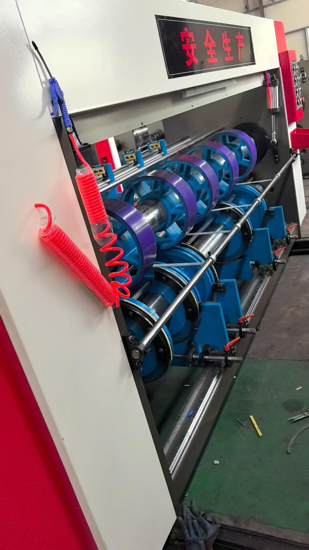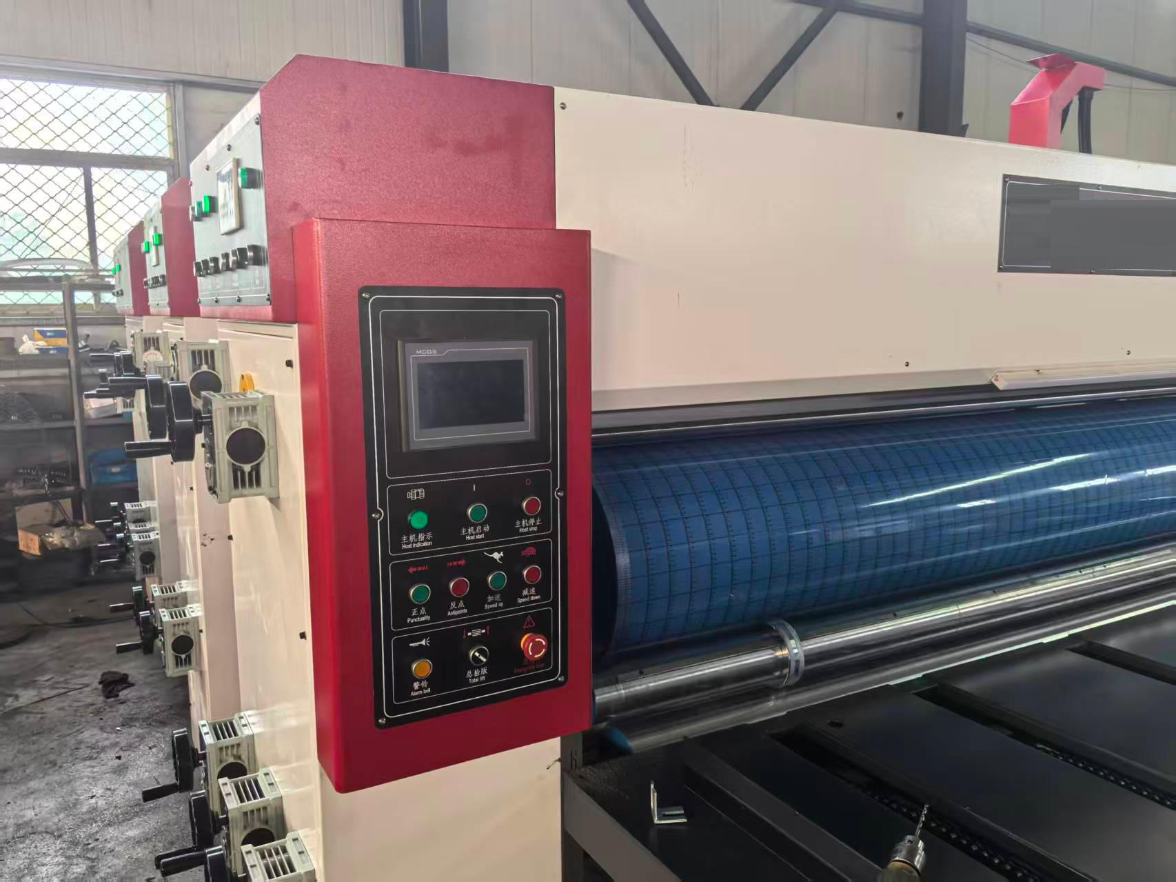 公司产品采用模块化、一体化结构,配备前缘真空吸附送纸、伺服驱动、PLC 智能控制系统与触摸屏操作界面,送纸平稳、套印精准、调机便捷。核心部件选用优质钢材与品牌电气元件,印刷部、开槽部、模切部协同作业,整机结构紧凑、运行稳定,可适配 A/B/C/E 等多种瓦楞纸板,印刷套准误差控制精准,开槽光滑、模切规整。