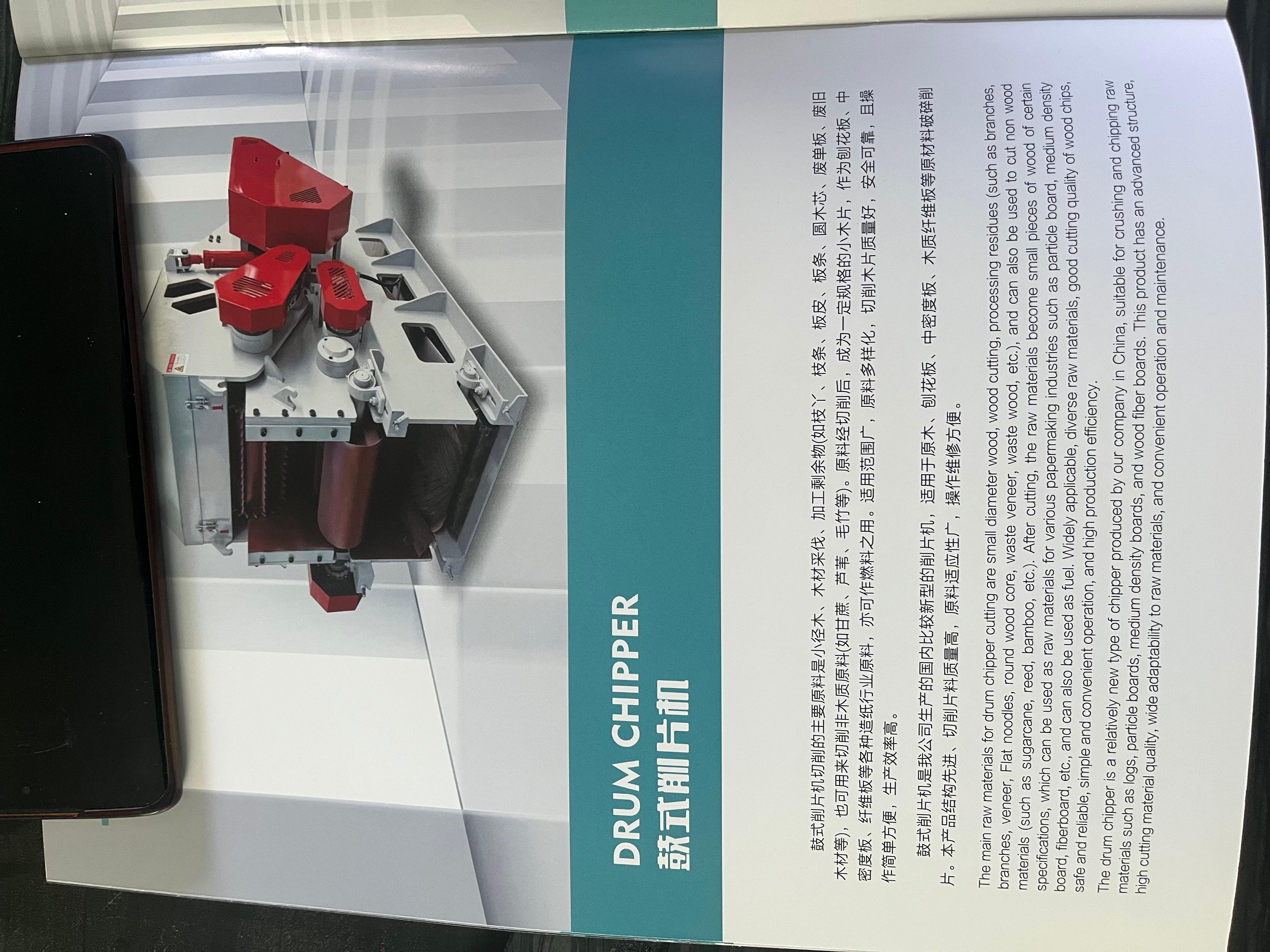 鼓式削片机也是公司的主打产品。鼓式削片机切削的主要原料丰富多样,包括小径木、木材采伐和加工剩余物,如枝丫、枝条、板皮、板条、圆木芯、废单板、废旧木材等,还可用来切削非木质原料,如甘蔗、芦苇、毛竹等。原料经切削后,成为一定规格的小木片,可作为刨花板、中密度板、纤维板等各种造纸行业的原料,亦可作燃料之用。它具有适用范围广、原料多样化、切削木片质量好、安全可靠且操作简单方便、生产效率高等特点。