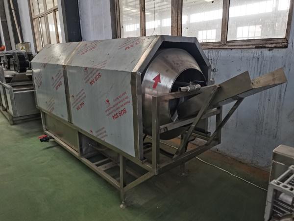 滚筒清洗机通过滚筒的旋转,使物料在滚筒内不断翻滚,从而达到清洗的目的。它具有清洗效率高、清洗质量好等优点,适用于各种形状和大小的物料清洗。毛辊清洗机利用毛辊的转动和摩擦,对物料进行清洗,能够有效去除物料表面的毛发、皮屑等杂质,广泛应用于肉类、果蔬等食品的清洗加工。