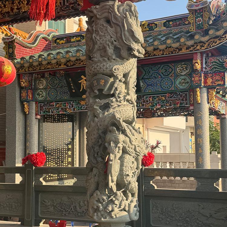 其中,公司的主营产品之一是中式传统龙柱。中式传统龙柱承载着深厚的文化内涵,在中国传统文化中,龙是吉祥、权威和力量的象征。福建泓时石业有限公司制作的中式传统龙柱,工艺精湛,龙的形态栩栩如生,每一处细节都展现出传统雕刻技艺的魅力。这些龙柱不仅具有装饰性,还能为建筑增添庄重和威严的氛围,适用于道观宫庙、祠堂宗祠等场所,让古老的建筑更具文化底蕴。