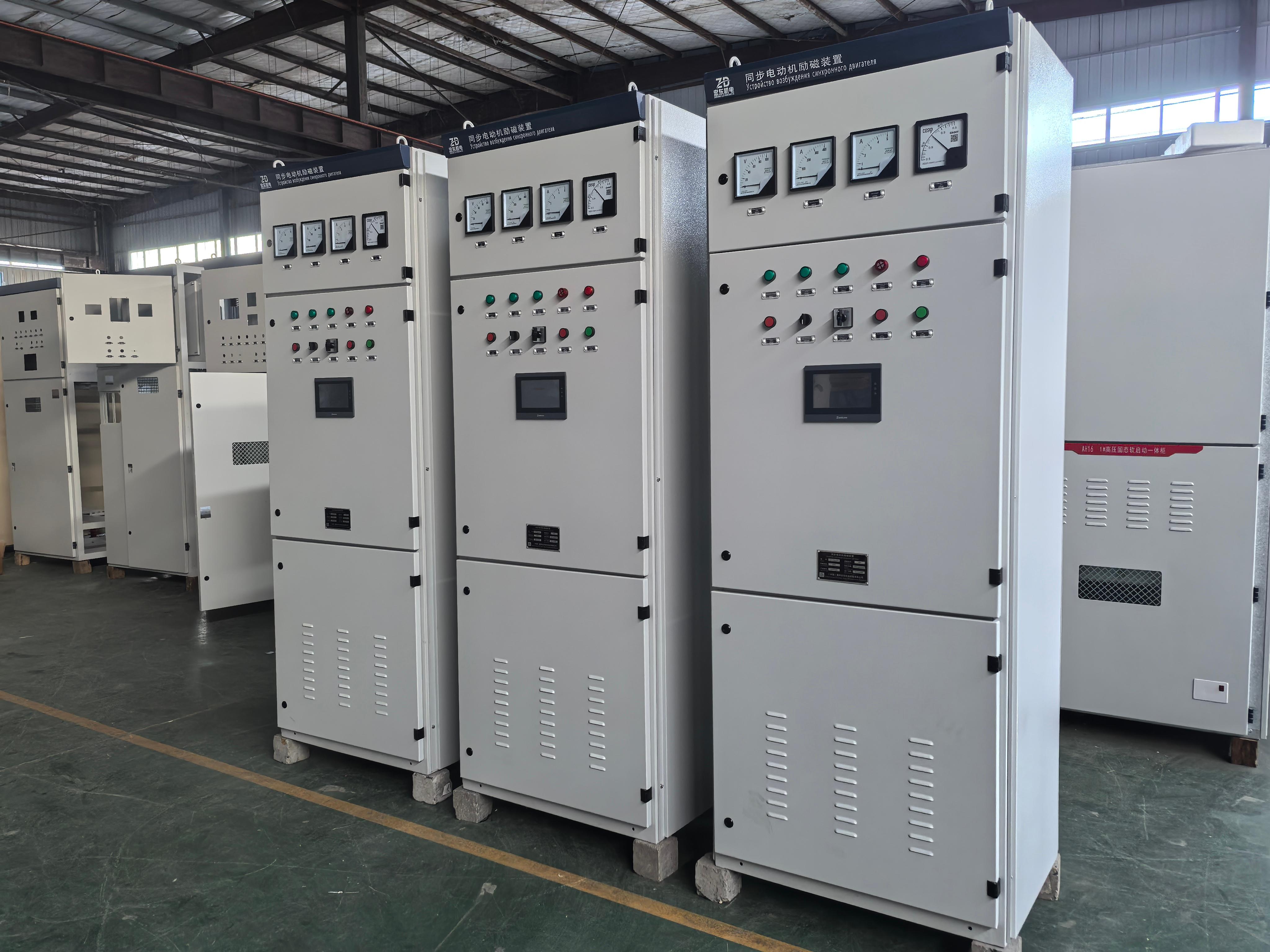 双通道励磁柜具有双路控制的特点,能够在不同的工况下灵活切换,为电机提供更加可靠的励磁支持。水泵励磁柜则针对水泵的运行特性进行优化,确保水泵在各种工况下都能稳定运行,提高水泵的使用寿命和工作效率。无刷励磁柜采用了先进的无刷技术,减少了电刷的磨损和维护成本,同时提高了电机的可靠性和稳定性。