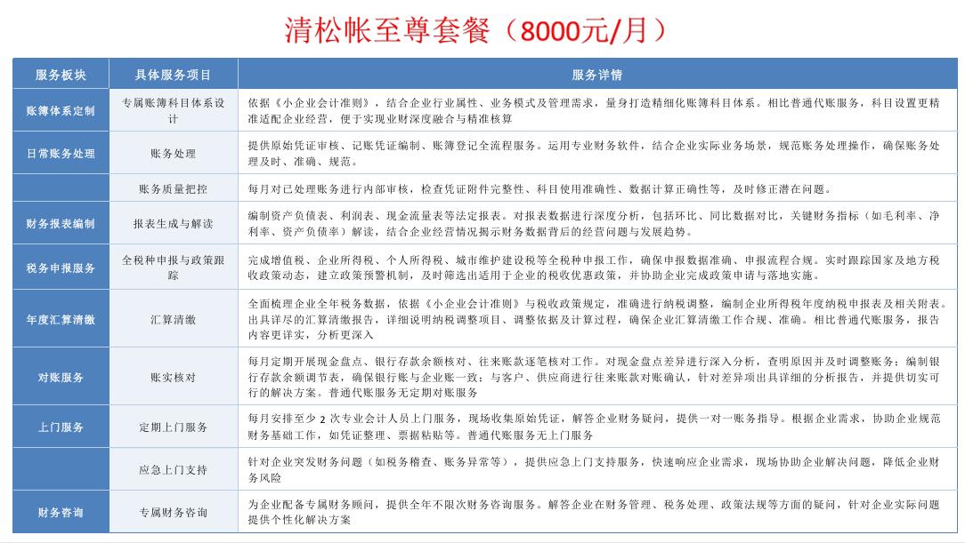 在售后服务方面,上海清松帐代理记账有限公司有着规范的签约交接流程。从前期沟通定制方案,到合同签订、资料账务交接、服务启动,各环节都严谨有序。其服务内容全面,涵盖核心财务业务与工商、财税咨询、社保工资等增值服务,能够满足企业的多元需求。依托专业团队、严格流程、风险防控机制与完善的沟通协作,结合合同保障,为客户提供稳定高效的服务,助力企业财务管理提质增效。