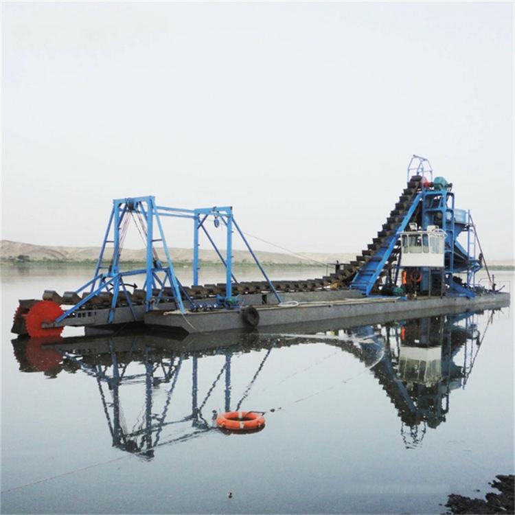 公司主营产品丰富多样,包括淘金船、链斗式淘金船、选金船、链斗船、选铁船等。淘金船是一种用于淘金作业的专业船舶,它能够在水域中有效地筛选和提取黄金。链斗式淘金船则是淘金船的一种特殊类型,其采用链斗式挖掘系统,能够高效地挖掘和采集水底的含金矿石。选金船主要用于对含金矿石进行筛选和分离,提高黄金的纯度和回收率。链斗船在挖掘和运输方面具有独特的优势,能够适应不同的水域环境和作业需求。选铁船则专注于铁矿石的筛选和提取,为钢铁行业提供优质的铁矿石原料。