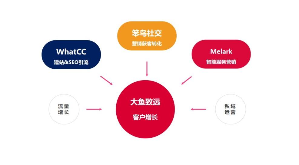 以AI与大数据技术为核心,大鱼致远攻克了AutoML自动化机器学习、NLP自然语言处理、社交B2B产业图谱等关键技术,客户推荐采纳率(ACC)达67%,推荐评估准确率(AUC)突破80%。构建了“社交获客 + WCC独立站 + Melark智能客服 + GEO+ SCRM订单转化系统”五大SaaS产品体系,实现营销获客、独立建站、客户服务、搜索引擎排名全链路数字化覆盖,可根据客户行业特性定制专属解决方案。