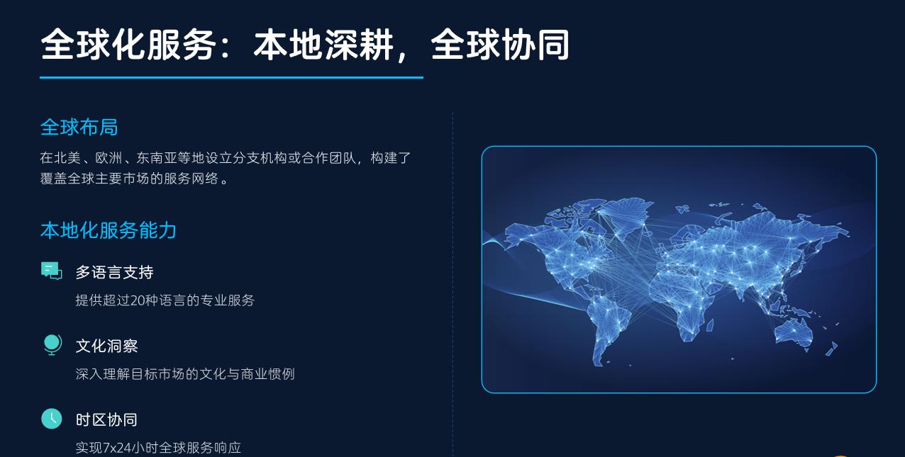 大鱼致远(广州)科技有限公司成立后,核心业务聚焦外贸与跨境电商数字化服务。公司国内网络覆盖10余城,珠三角占45%;海外业务遍及180国,欧美、东南亚、北美市场占营收70%,北美年增58%。其管理层来自谷歌、华为、阿里巴巴、腾讯等头部企业,含2018年福布斯与胡润30岁以下双*精英,以及牛津、帝国理工等名校背景专家。技术研发团队由中科院院士与首席科学家领衔,北京、深圳、厦门三大数据研究院构成核心技术矩阵。