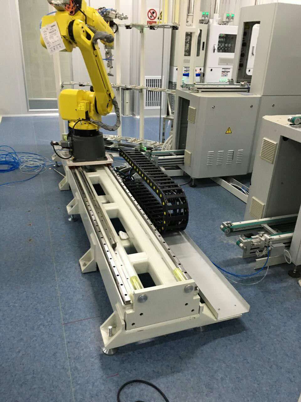 机器人行走轴为机器人提供了移动的能力,使机器人可以在不同的工位之间自由移动,大大提高了机器人的使用效率和通用性。它可以根据不同的生产需求进行定制,适应各种复杂的生产环境。机器人地轨是机器人行走的基础支撑部件,具有较高的稳定性和精度,能够确保机器人在行走过程中的平稳运行。