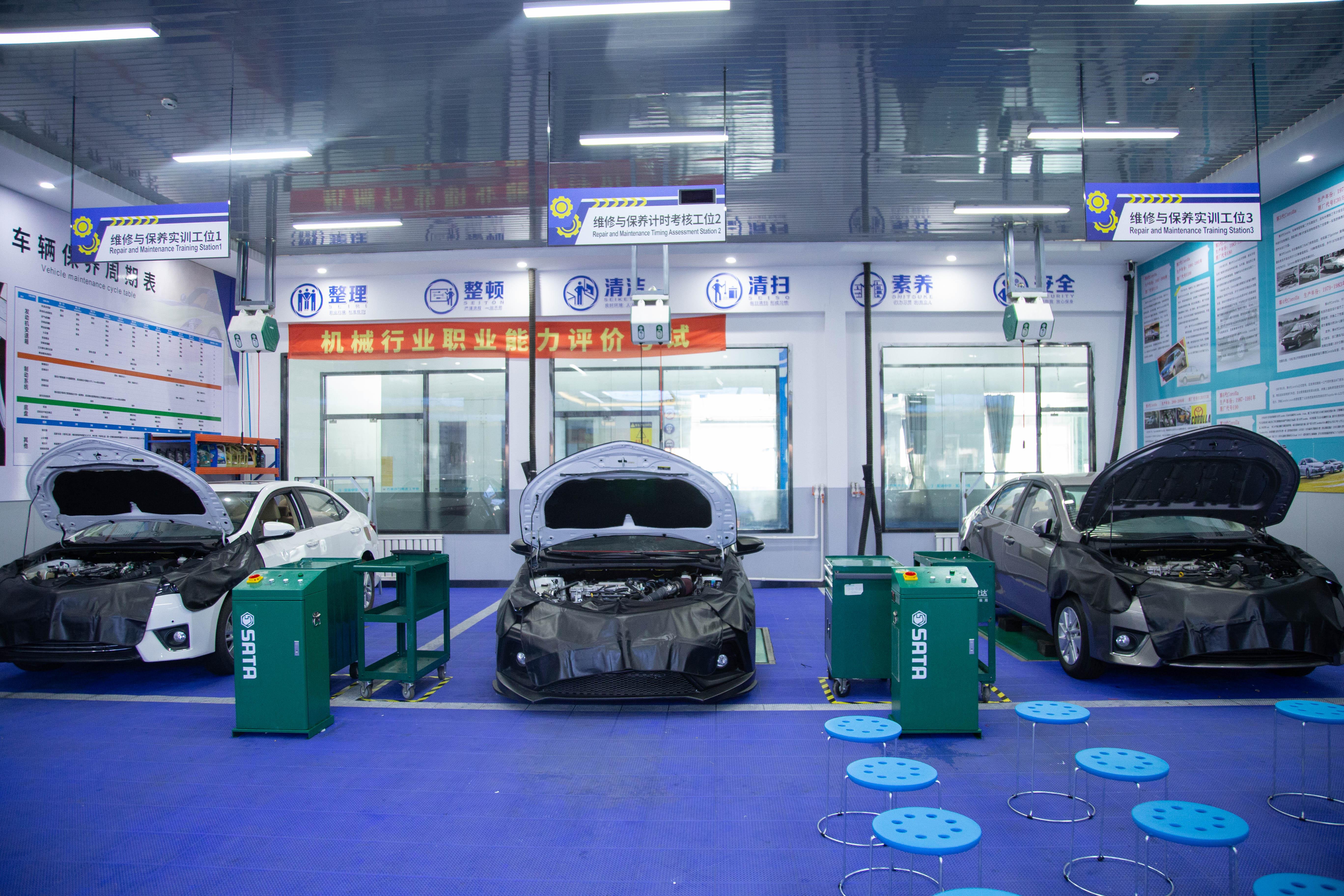 学校的硬件设施完备先进。学校占地面积34141平方米,建筑面积14354平方米,可容纳1300余名学生同时学习和生活。学校秉持“实训为王”的办学理念,斥巨资打造了多个专业实训中心与实训群,涵盖汽车智能化示范实训中心、整车实训中心、新能源汽车实训中心、轨道交通实训室等。学校购进中美德日韩五大车型近百余辆及行业一线专业设备,配备轨道交通模拟舱等实训设施,实训设备齐全、技术先进,可实现“零距离”实操学习,有效提升实训技能掌握度、降低实操课堂实训等待率,全方位保障学生的实操训练需求,让学生在校就能掌握行业前沿技能。