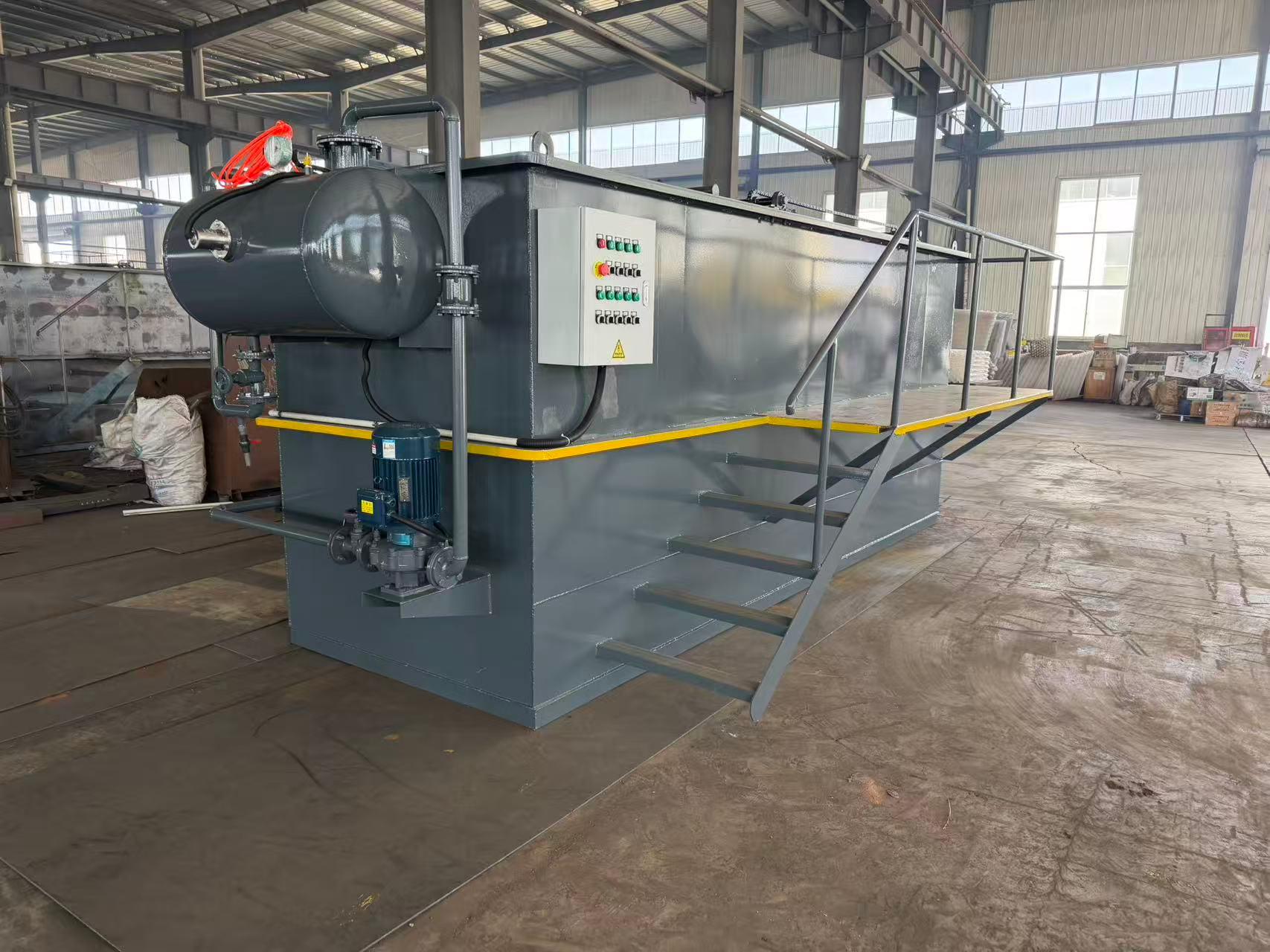 气浮一体机可高效地实现固液分离,它通过产生微气泡,使微气泡(≤60μm)吸附油脂、悬浮物等污染物,从而将其从水中分离出来。这种设备广泛适用于含油、印染、食品、养殖等多行业废水处理。在某食品加工厂的改造项目中,配套气浮机与一体化设备联用,场地占用较传统方案减少了60%,年运营成本降低了45万元。