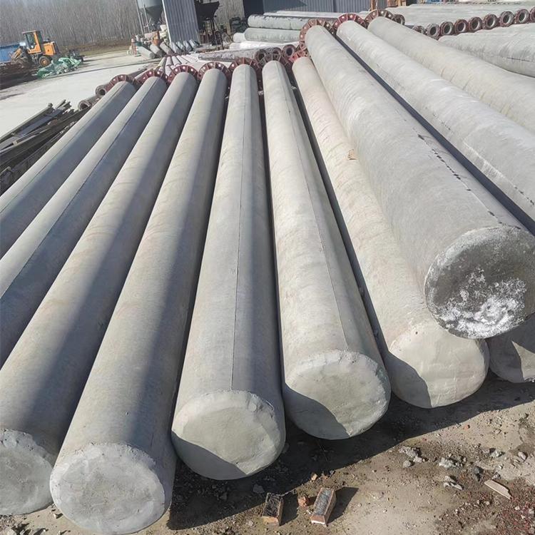 大弯矩电杆在结构和工艺上也有独特之处。其截面采用大梢径(φ230/270/310/400mm)、加厚壁,高配筋率 + 预应力钢筋 + 非预应力螺纹筋复合配置,端部锚固强化;使用C50 - C60高强混凝土,离心成型 + 蒸汽养护,密实度高。连接方式采用钢圈焊接或法兰连接,可分段运输现场组装;基础多为现浇梯形基础,省去卡盘、拉线盘与大量拉线,占地小、施工快。