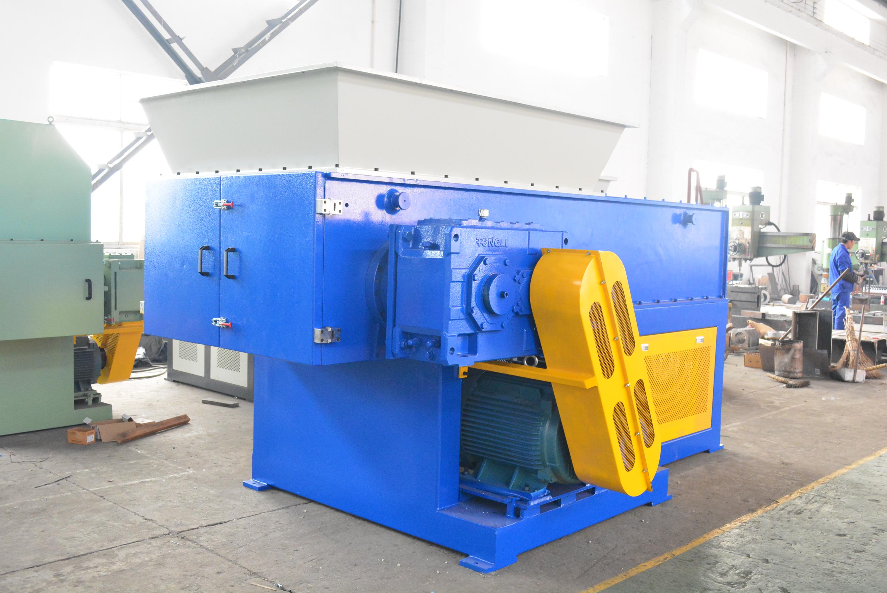 轮胎撕碎机专门用于处理废旧轮胎。它的传动系统采用齿轮箱、重型轴承和大型传动轮,经硬化处理,耐冲击、寿命长、运行平顺。在运行过程中,低噪低尘,采用PLC全自动控制,一键启停、自动正反转、故障报警,操作简单、节省人工。