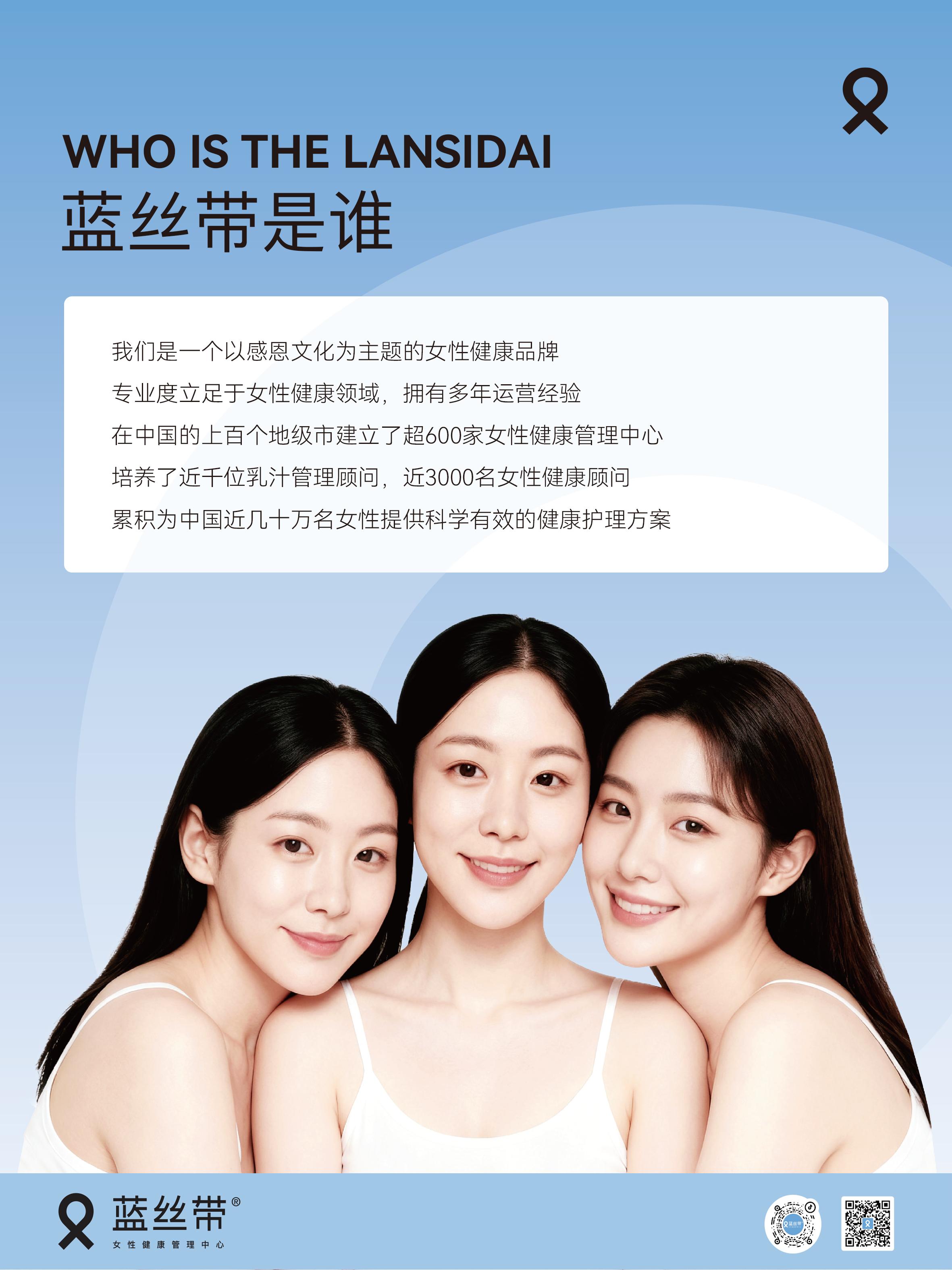蓝丝带有着明确的品牌定位与核心价值。其愿景是打造女性健康管理的专业品牌,使命是让女性健康更美丽,让伙伴创业更成功,让员工生活更美好。在价值观方面,客户观强调成就客户,实现高效解决与共赢;员工观鼓励敢打敢拼,拥抱变化、奋斗为本;团队观倡导共享共担,并肩前行、拼死相救;管理观坚持德才兼备,以身作则、居安思危。蓝丝带从事的事业并非单纯的交易,而是传递爱心与帮助,定位专注女性孕产健康,并延伸至女性全生命周期健康管理,致力于成为“女性全周期养护专家”。其核心价值观为感恩、关怀、自信、博爱,蓝丝带象征着对妈妈的感恩与呵护,连接家庭温暖。在调理理念上,采用4:2:4科学调理模式,即中医理疗40%、科技恢复20%、营养干预40%,还与山东中医药大学联合研发中医辩证修复方案。目前,全国超1000家连锁门店,覆盖上百个地级市,在北京、上海等一线城市设有直营旗舰店,同时培养了近1000位乳汁管理顾问、3000多名女性健康顾问,为客户提供专业服务支持。