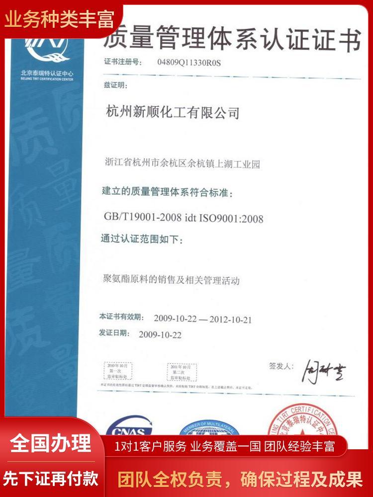 杭州贝安企业管理有限公司自身具备合法合规的经营资质,持有行政许可证书,拥有2条商标信息,参与多项招投标项目,经营过程中无任何自身风险、周边风险及历史风险,信用状况良好,合规经营、诚信服务的理念获得行业广泛认可。作为专业认证咨询机构,公司具备开展各类国际认证、产品认证及相关咨询服务的专业能力,可规范提供ISO9001:2015质量管理体系、ISO14001环境管理体系、OHSMS18000职业安全卫生管理体系、HACCP、IATF16949、ISO13485等国际认证咨询服务,以及CE、GS、E - MARK、CCC、ROHS、FSC等产品认证咨询服务,服务范围覆盖各类主流认证领域,具备丰富的认证咨询实操资质和技术能力。