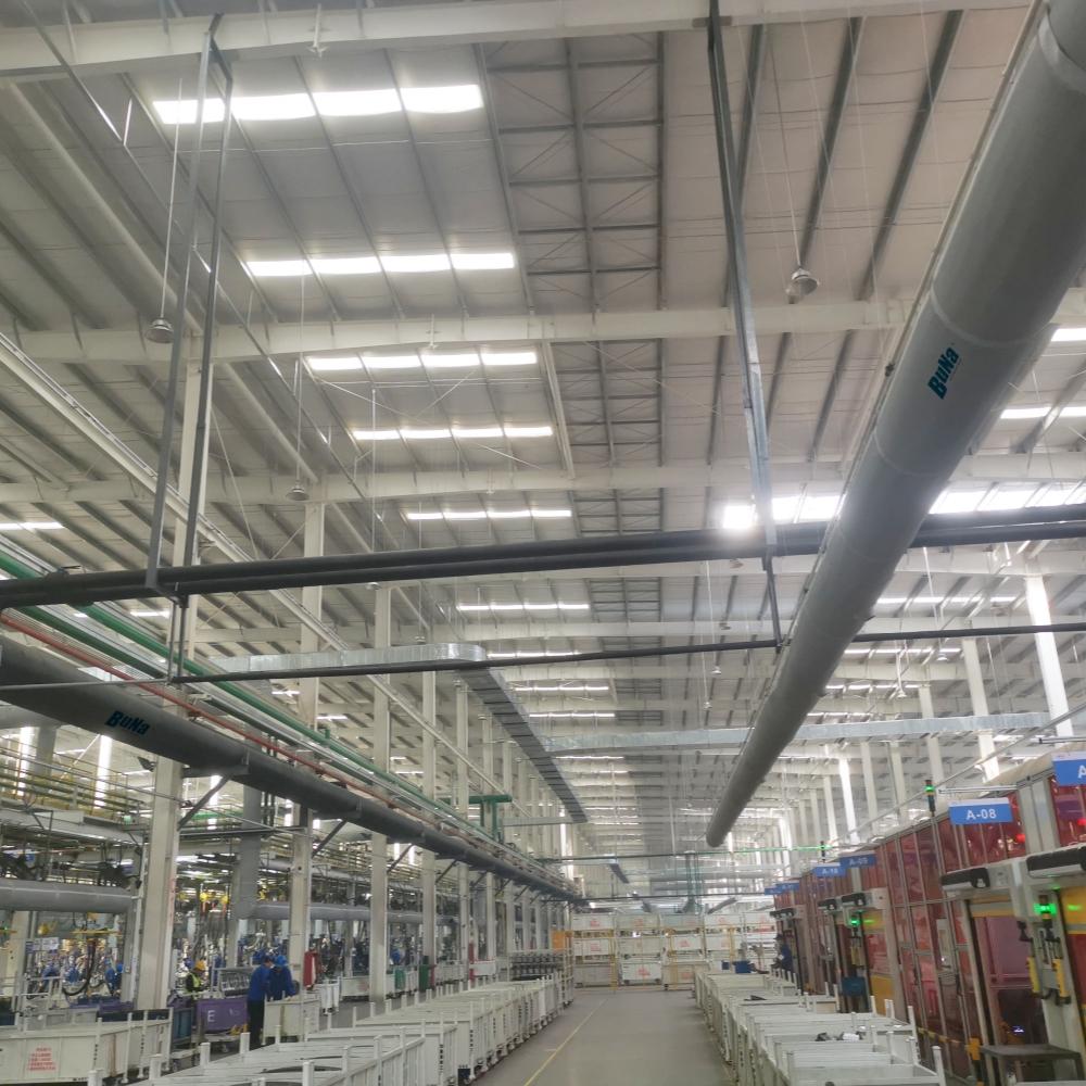 在食品医药行业,江苏布纳科技发展有限公司的绝热复合保温风管等产品能有效保障空气洁净度、温湿度稳定性与送风均匀性,同时兼顾易清洗、防霉抗菌等性能要求,助力企业构建安全、稳定、符合规范的生产环境。在汽车制造领域,这些产品可通过科学的气流组织设计,实现新风循环、温度与风速的精准控制,有效改善车间作业环境,提升生产稳定性与员工舒适度。在装备制造行业,绝热复合保温风管等产品适用于大空间、高设备密度及复杂工况环境,可有效优化空气流动组织,改善作业环境,降低运行能耗。在体育、展览行业,产品能够有效解决传统金属风管在大空间中存在的风速不均、噪音大、维护复杂等问题,具有环保、易清洗、防火、抗菌、安装便捷、送风均匀等显著优势,为各类公共场馆打造舒适、节能、健康的空气环境。