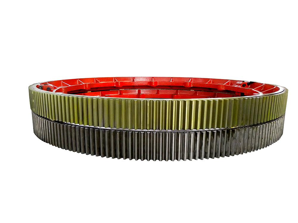 球磨机大齿轮是球磨机的关键部件之一,它在球磨机的运行中起着至关重要的作用。球磨机通过大齿轮的转动,带动筒体旋转,使筒体内的研磨介质和物料充分混合、研磨,从而实现物料的粉磨。辉县市腾飞机械制造有限公司生产的球磨机大齿轮具有高精度、高强度、耐磨性好等特点。其高精度的制造工艺确保了齿轮的传动平稳,减少了设备的振动和噪音;高强度的材料和先进的热处理工艺,使得齿轮能够承受较大的载荷,延长了使用寿命;良好的耐磨性则保证了齿轮在长期运行过程中不易磨损,降低了更换频率,提高了生产效率。