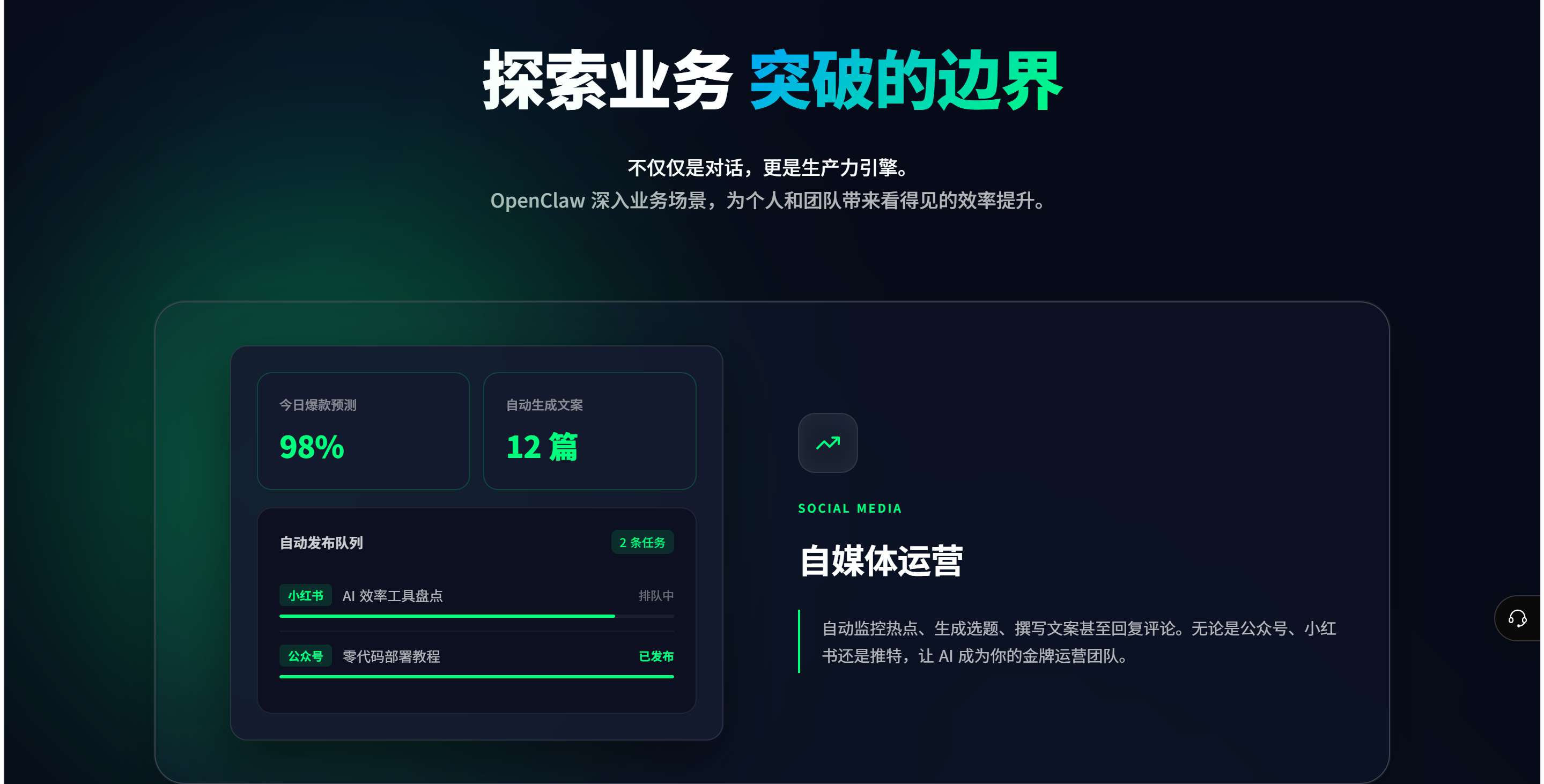 广西OpenClaw中文教程服务,为广西地区的用户提供了学习和使用OpenClaw的便利。通过详细的中文教程,用户能够更快地掌握OpenClaw的使用方法,提高工作效率。湖南OpenClaw vs同类产品服务商,通过与同类产品的对比,突出了OpenClaw的优势,为湖南地区的客户提供了更客观的选择依据。