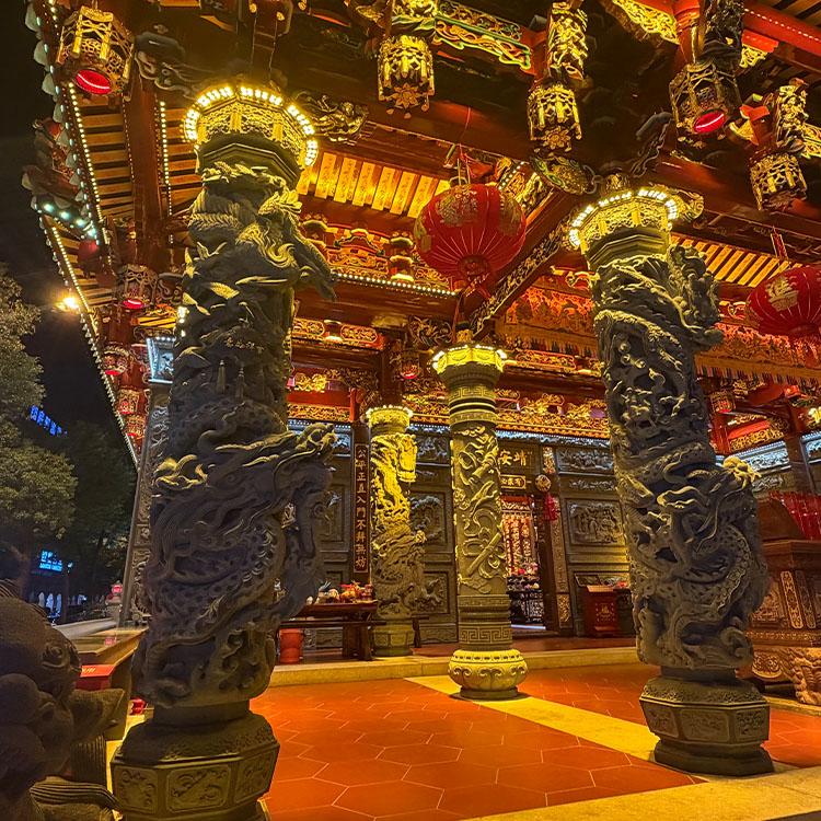 寺庙双龙石雕龙柱以其独特的造型吸引着人们的目光。两条龙相互缠绕、嬉戏,展现出一种灵动的美感。在寺庙中,双龙石雕龙柱往往是建筑的亮点之一,它不仅具有装饰作用,还寓意着吉祥、繁荣。福建泓时石业有限公司的工匠们凭借着精湛的技艺,将双龙的形态刻画得惟妙惟肖,让每一根寺庙双龙石雕龙柱都成为了一件艺术珍品。