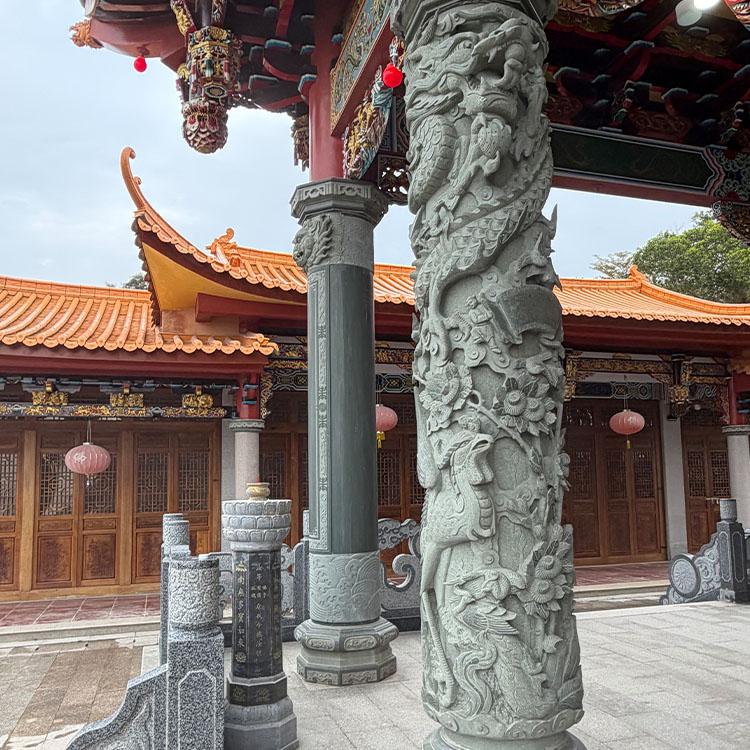 福建泓时石业有限公司主导经营着多种适配道观宫庙、祠堂宗祠、园林古建、中式庭院别墅装饰的石雕工艺品。其中,石雕龙柱是该公司的主营产品之一,包括寺庙石雕龙柱、广场青石石龙柱、寺庙双龙石雕龙柱、石雕单龙柱、花岗岩滚龙柱等。这些不同样式的石雕龙柱,在不同的场景中都能发挥出独特的作用。