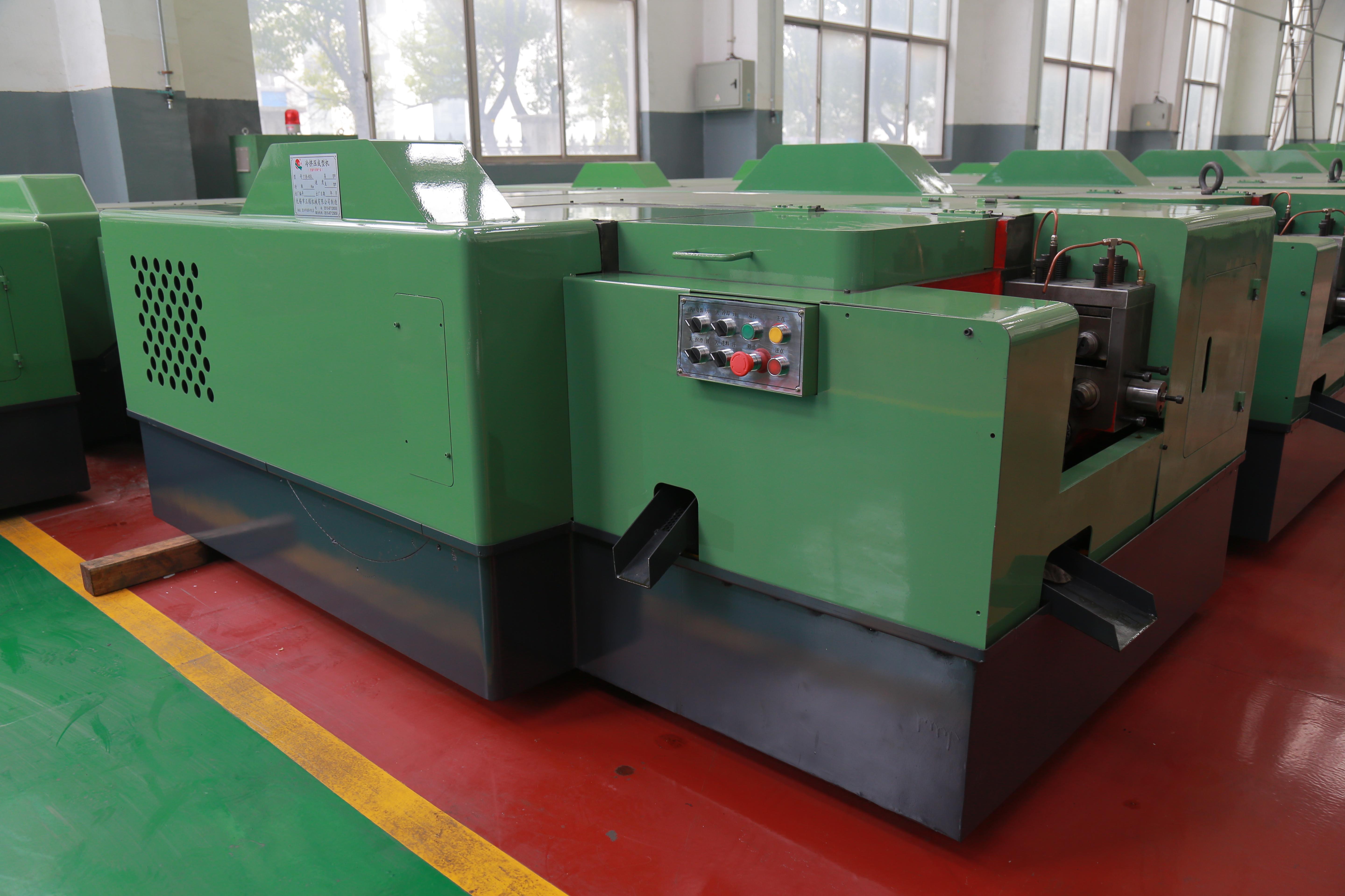 在冷镦设备制造领域,江苏群丰智能装备有限公司是一家颇具实力的企业。该公司位于江苏省宜兴市经济开发区,占地100亩,总投资3亿元,是拥有30年经验的中国紧固件成型设备的专业制造商。公司主要为客户提供多工位螺母冷镦机,螺栓冷镦机,加长型冷镦机,精密零件成型机,齿轮铜瓦式大型冷镦机等多系列冷镦成型设备,目前年产各类冷镦设备约600台。