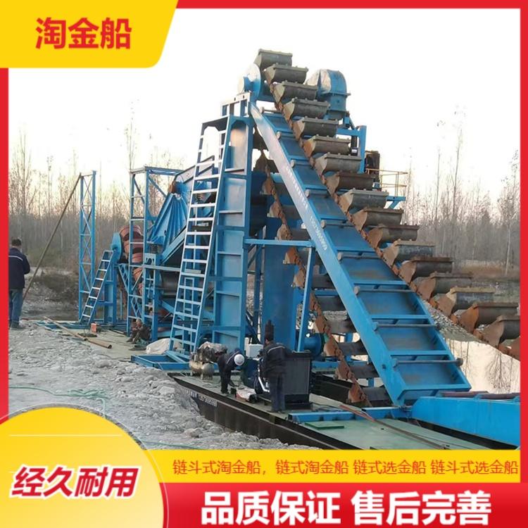 该公司也是链式淘金船生产厂家。链式淘金船采用链式传动系统,具有高效稳定的特点。在淘金过程中,链式结构能够更有效地带动淘金设备运转,提高淘金效率。而且,链式淘金船的设计使得其在复杂的水域环境中也能稳定作业,保证了淘金工作的连续性。