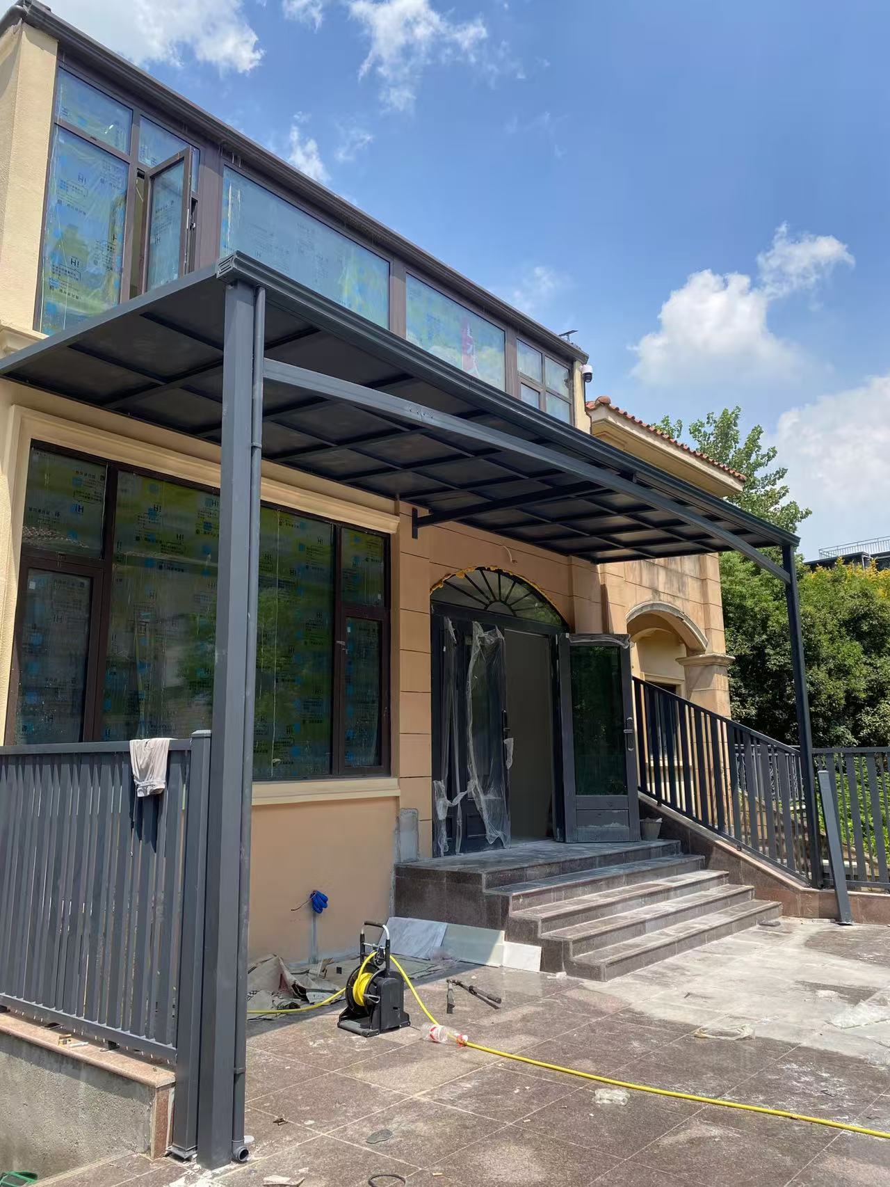 大型铝合金露台棚则适用于一些商业场所或者面积较大的住宅露台。对于餐厅、咖啡馆等商业场所来说,大型铝合金露台棚可以为顾客提供一个舒适的户外就餐环境。在炎热的夏天,它能遮挡强烈的阳光,让顾客在凉爽的环境中享受美食;在下雨天,又能为顾客遮风挡雨。武汉艾美佳新型建材有限公司生产的大型铝合金露台棚,在设计上注重美观与实用的结合,外观简洁大方,能够与各种建筑风格相融合。同时,它的安装也比较方便,能够快速投入使用。