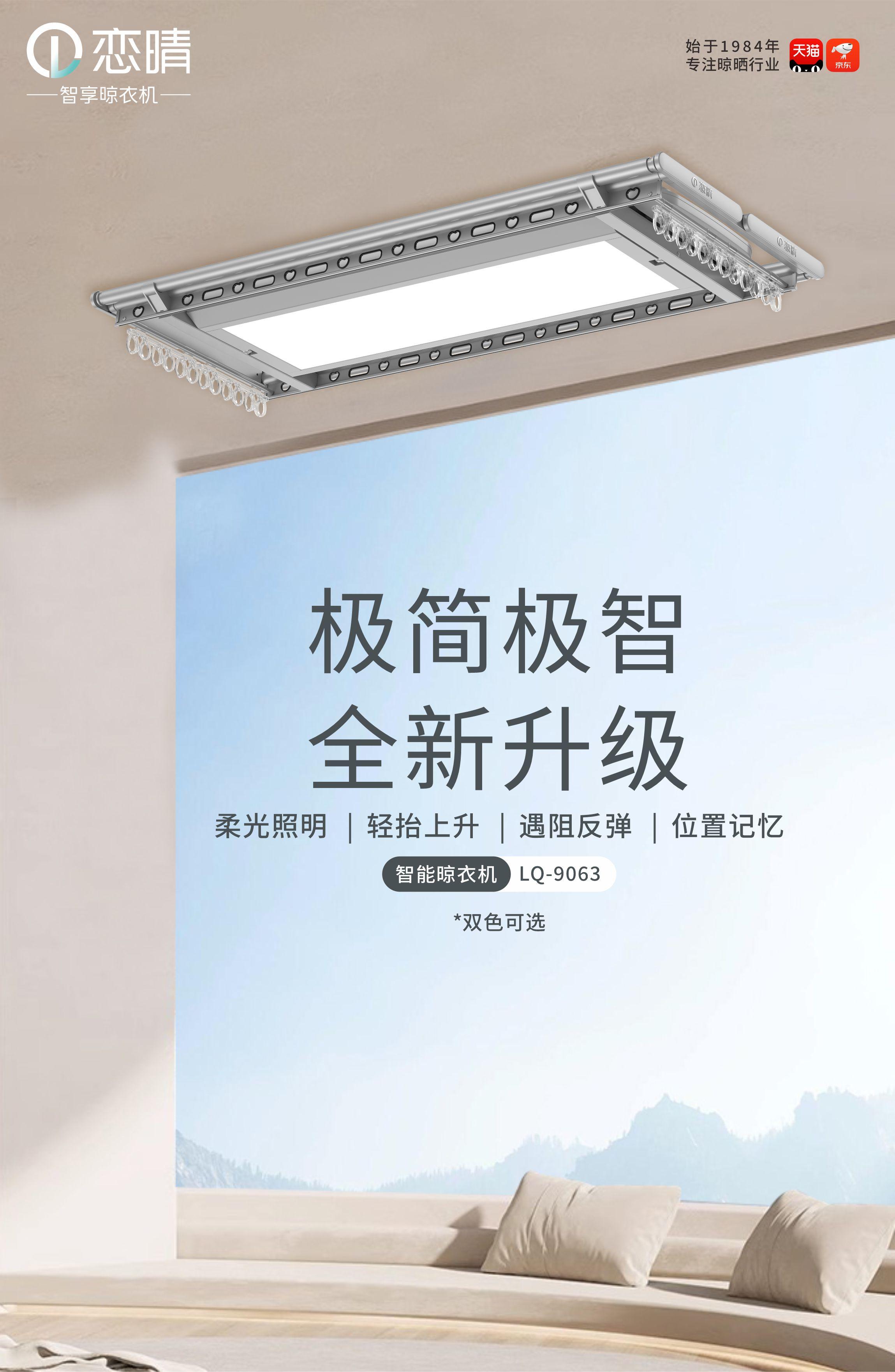 智能晾衣机是广东恋晴智能家居有限公司的核心产品之一。以产品智能程度为主,兼具特色消毒,杀菌,风干,烘干,照明等功能为高附加值。智能晾衣机可以根据天气情况自动调整晾晒模式,当遇到下雨天气时,它会自动收回,避免衣物被淋湿。此外,智能晾衣机还可以通过*****进行远程控制,让用户随时随地都能掌握晾衣机的状态。