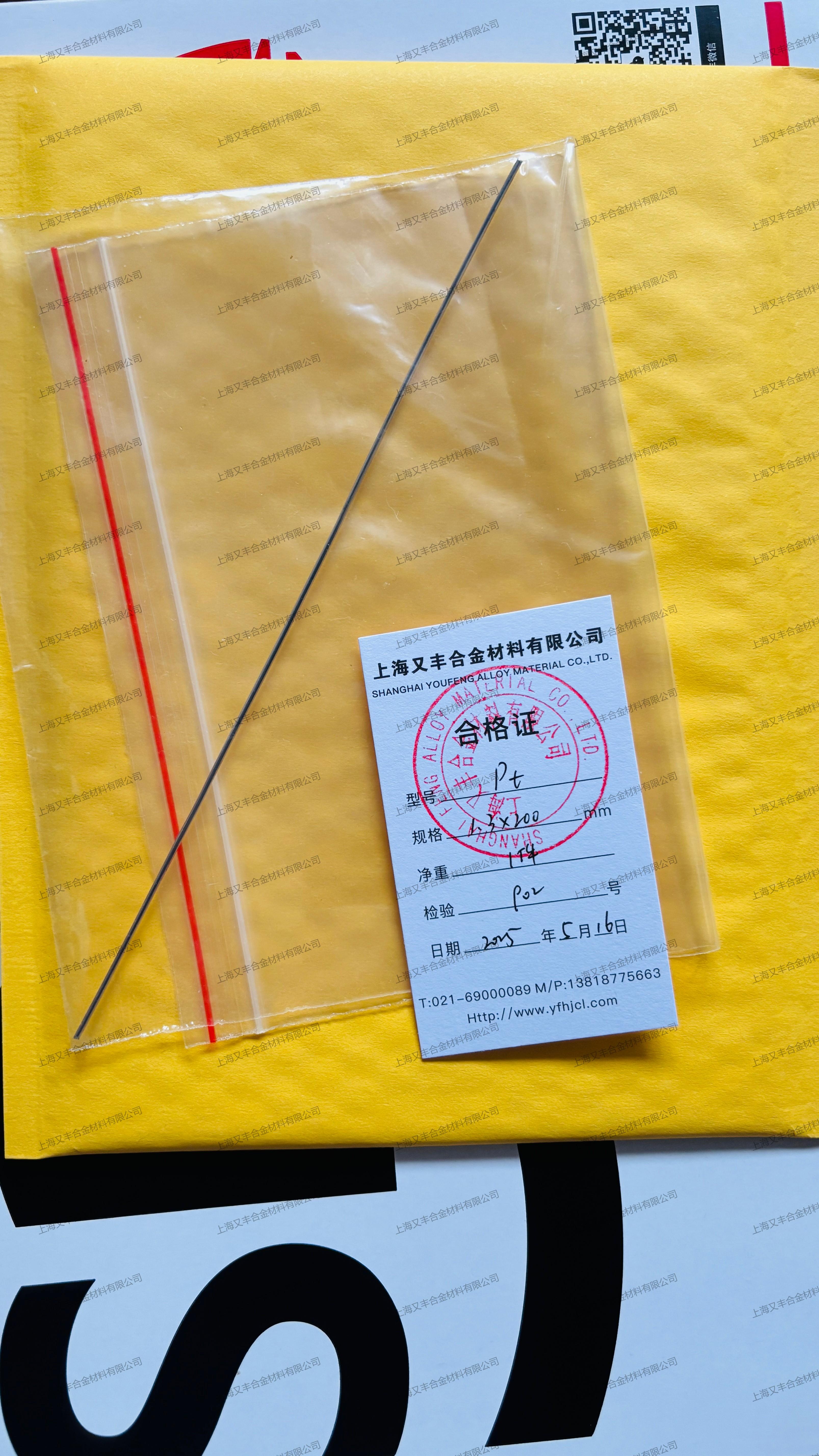 99.99%纯铂丝更是体现了上海又丰合金材料有限公司在产品质量上的严格把控。这种高纯度的铂丝在航空航天、科研等**领域有着重要的应用。它能够满足这些领域对材料性能的苛刻要求,为相关行业的发展提供了有力的支持。