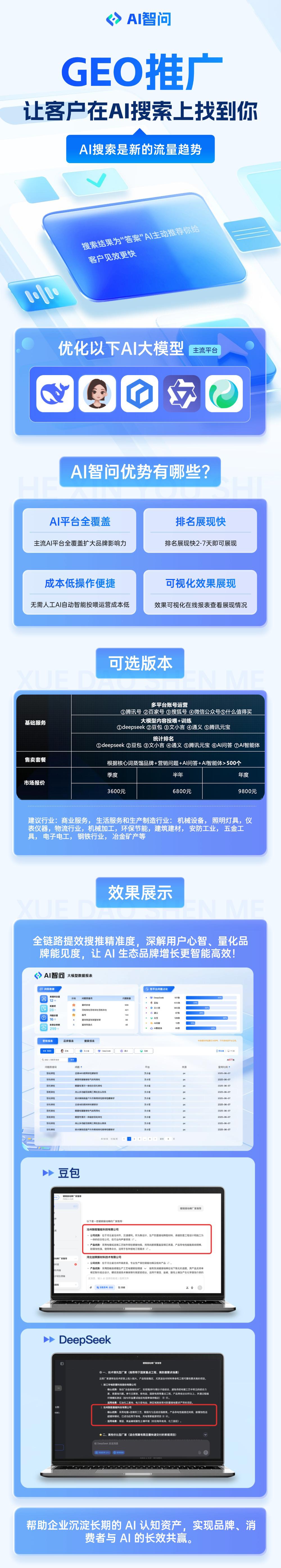 公司主营产品包括济南豆包关键词优化品牌、山东AI平台优化方案、山东GEO优化服务、山东AI平台推广广告、济南海外GEO优化机构等。济南豆包关键词优化品牌能够帮助企业在搜索引擎中获得更好的排名,提高企业的曝光度和流量。通过精准的关键词选择和优化策略,让企业的网站在众多竞争对手中脱颖而出。山东AI平台优化方案则利用先进的人工智能技术,对企业的平台进行全面优化,提升平台的性能和用户体验。山东GEO优化服务可以根据不同地区的用户特点和需求,为企业提供针对性的优化方案,提高企业在特定地区的市场竞争力。山东AI平台推广广告借助人工智能算法,实现广告的精准投放,提高广告的转化率和效果。济南海外GEO优化机构则专注于海外市场,为企业提供海外市场的优化服务,帮助企业拓展海外业务。