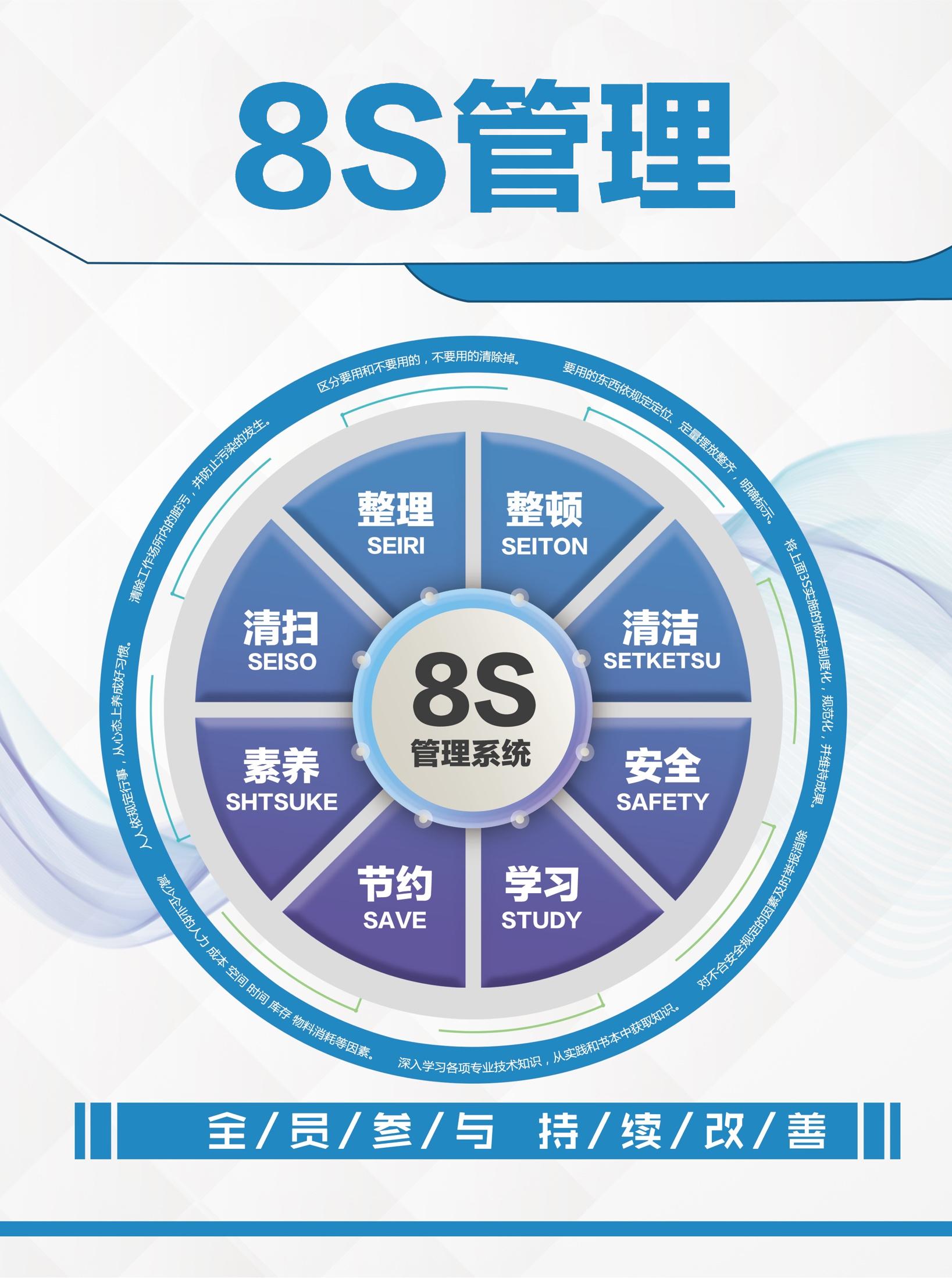 公司推行8S体系管理,从整理、整顿、清扫、清洁、素养、安全、节约、服务八个维度全面提升管理水平,确保生产环境整洁有序、作业流程规范高效。其组织架构清晰,质量体系管理严格,通过持续优化团队、改进工艺、更新设备,不断提升综合服务能力。