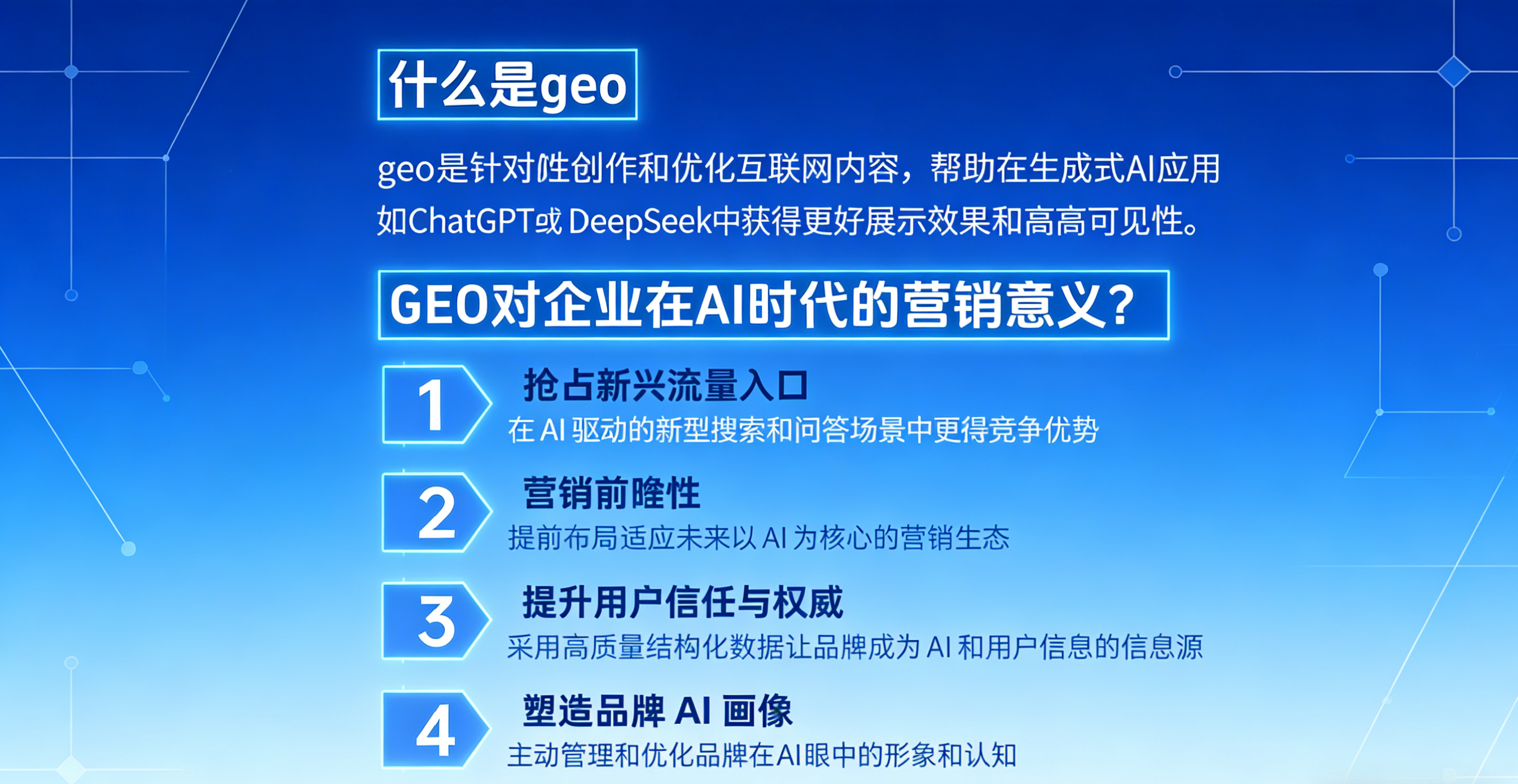 石家庄geo优化外贸一级代理商服务,能够帮助中小企业更好地在国际市场上进行推广。通过专业的优化策略,提升企业在国际搜索引擎中的排名,增加企业的曝光度,从而吸引更多的潜在客户。石家庄外贸geo优化广告则是利用精准的地理定位技术,将广告投放给目标地区的潜在客户,提高广告的效果和转化率。