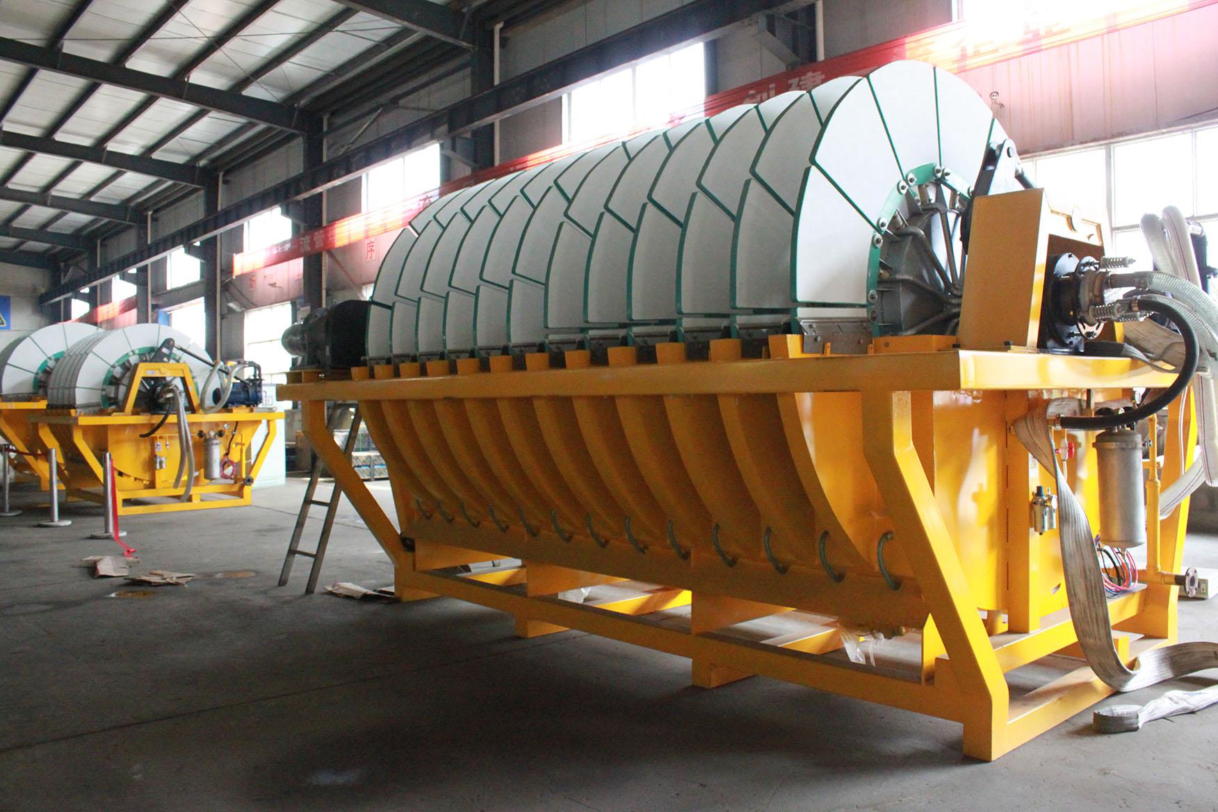 盘式真空过滤机是一种高效的固液分离设备,它利用真空吸力将悬浮液中的固体颗粒截留在过滤介质上,实现固液分离。这种过滤机具有过滤效率高、处理量大、操作简单等特点,广泛应用于矿山、化工等行业的精矿、尾矿脱水等工艺中。例如在矿山行业,它可以有效地将矿石中的水分去除,提高矿石的品位和运输效率。