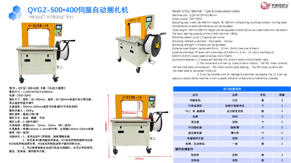 公司构建了丰富的产品矩阵,涵盖伺服高速自动捆扎机、伺服自动捆扎机、加压伺服自动捆扎机,以及封箱捆扎一体流水线、动力滚筒流水线、无动力滚轮流水线等。可满足包装印刷、瓦楞纸箱、食品医疗、家私家电、塑胶五金等不同行业客户多样化的打包捆扎需求,同时能依据客户特殊要求提供定制化服务。不仅如此,公司不仅提供打包机单机设备,更能为客户打造定制化整体解决方案,涵盖纸箱开箱、装箱封箱、捆扎、码垛输送等全流程设备与方案。曾为苹果、谷歌、三星等大型企业研发生产定制设备,同时持续服务国内众多大型企业,以专业能力适配不同规模客户的个性化生产诉求。