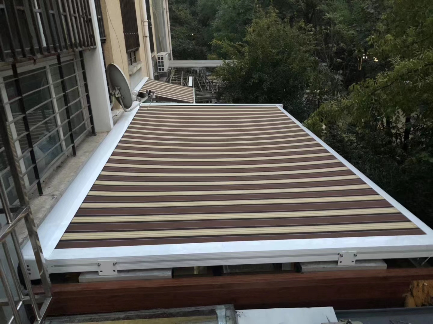 公司的遮阳棚与雨棚产品涵盖固定款与伸缩款,可根据窗户、露台、门头的尺寸定制。面料方面,客户可以选择遮光率70% - 95%的防晒布或透光率达80%的耐力板。这样的设计既满足了夏季遮挡烈日、降低室内温度的需求,又能在雨季阻挡雨水侵袭,让露台、门头区域四季都能使用。