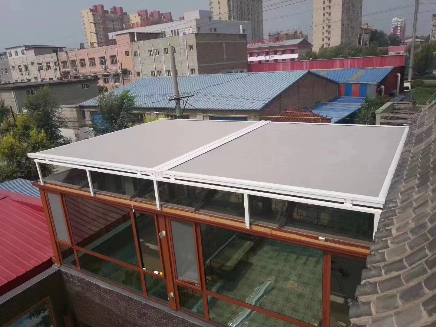 北京双海天瑞商贸有限公司的主营产品丰富多样,涵盖了大型阳光房遮阳棚、阳光房遮阳蓬、阳光房专属遮阳帘、阳光房手动遮阳和阳光房电动遮阳等。这些产品专为北京家庭阳光房定制,有效解决了阳光房夏季“闷热如蒸笼”的痛点。通过精准调节遮阳面积,既保留了阳光房的采光优势,又能将室内温度降低5 - 8℃,让阳光房真正成为四季舒适的休闲空间。