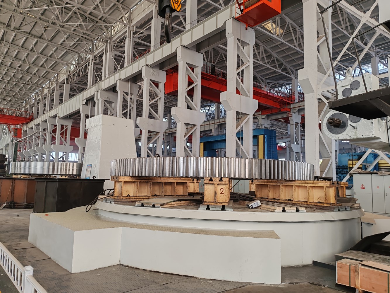 铆焊车间由两大车间组成,总面积超2100平方米,配备150吨大吨位行车,具备超大型金属结构件的铆焊能力。强大的铆焊能力确保了齿轮圈在组装过程中的牢固和稳定。