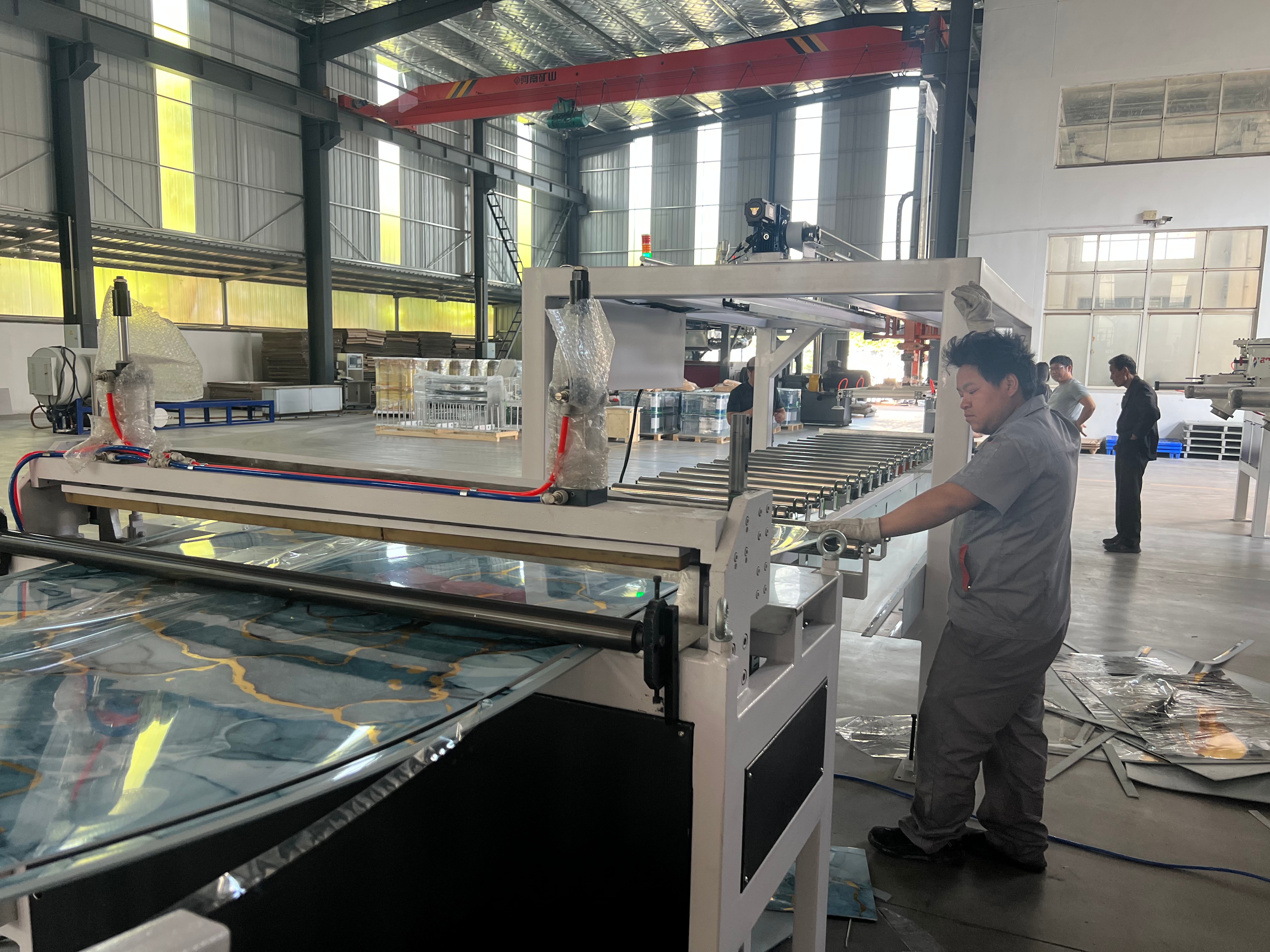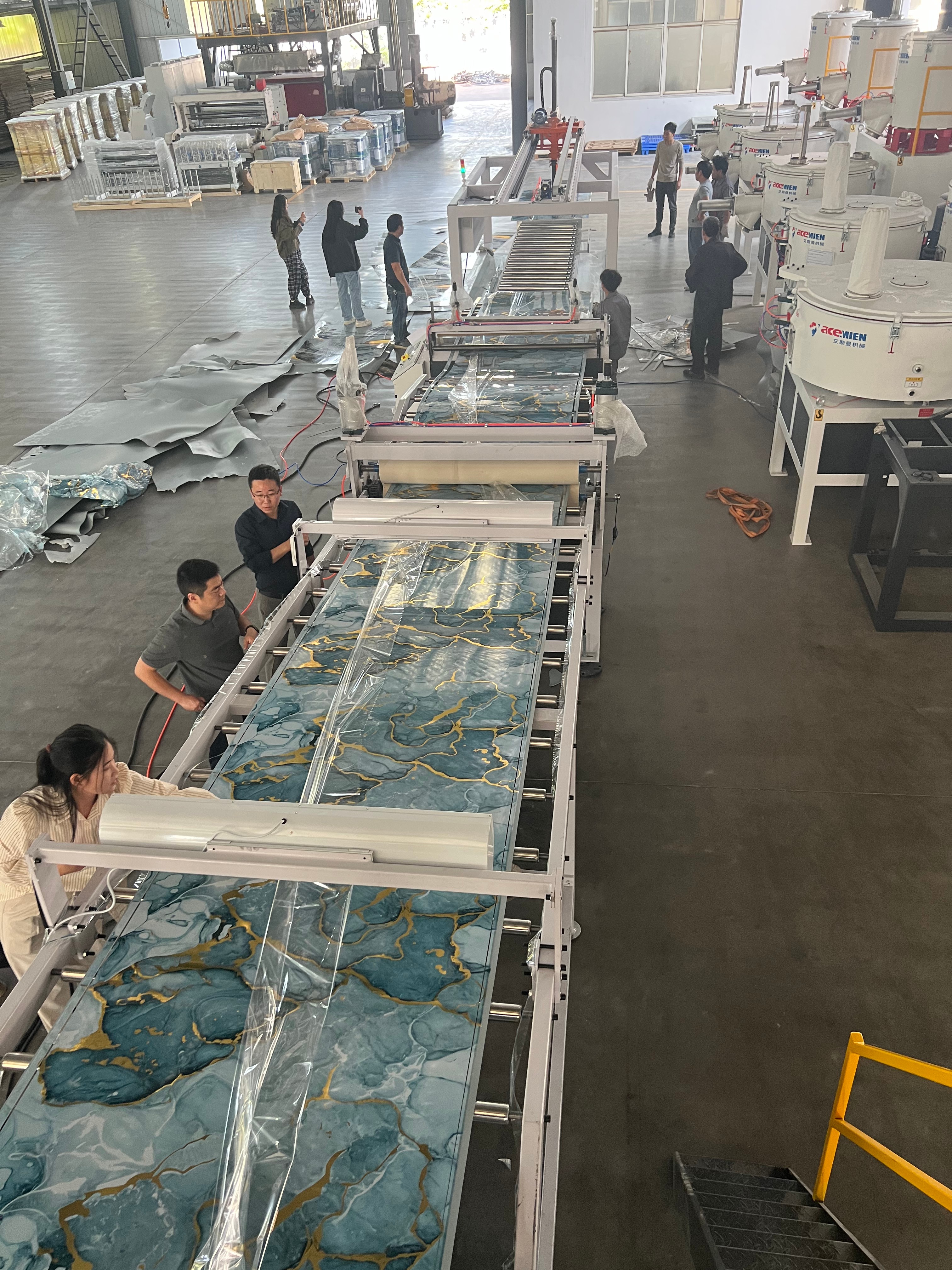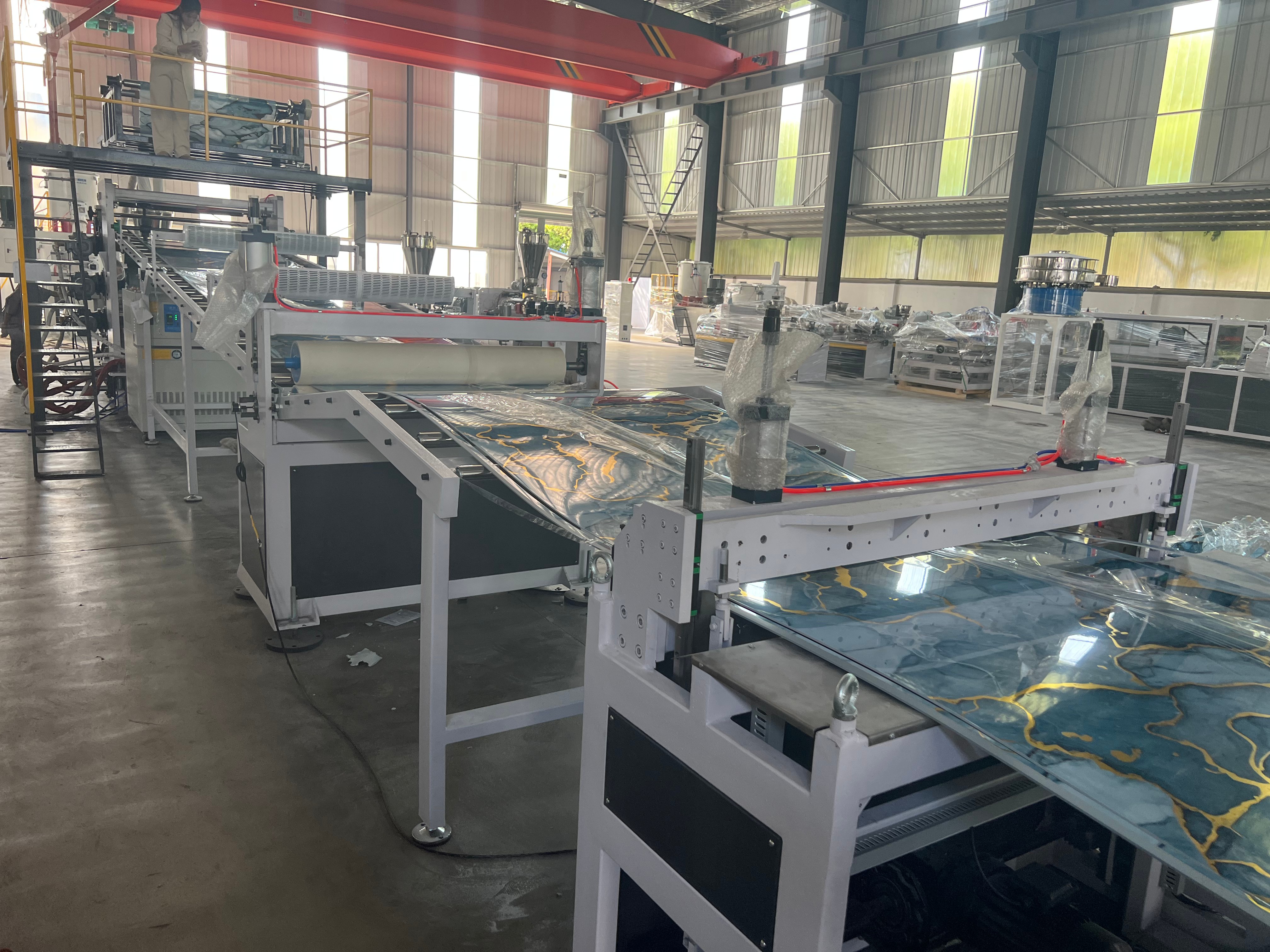 PVC仿大理石板生产线所生产的仿大理石板,具有逼真的大理石纹理和质感,同时具备重量轻、强度高、易加工等特点。这种板材广泛应用于室内装修领域,如墙面装饰、地面铺设等。它不仅能够为室内空间营造出豪华、大气的氛围,还能有效降低装修成本。江苏艾斯曼机械有限公司的PVC仿大理石板生产线采用了先进的生产工艺和技术,能够确保生产出的板材质量稳定、纹理清晰。
