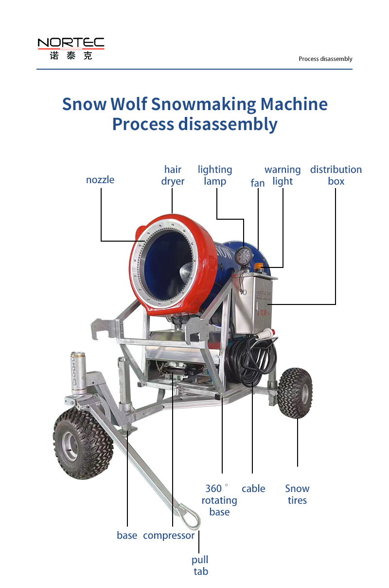 国产造雪机工厂依托国内的产业优势和技术支持,打造出具有高性价比的造雪机产品。这些产品在性能上不逊色于进口设备,同时在价格上更具优势,能够为客户降低成本。诺泰克造雪机订制厂家可以根据客户的特殊需求,定制专属的造雪机。无论是在造雪量、雪质要求还是设备的外观设计等方面,都能满足客户的个性化需求。