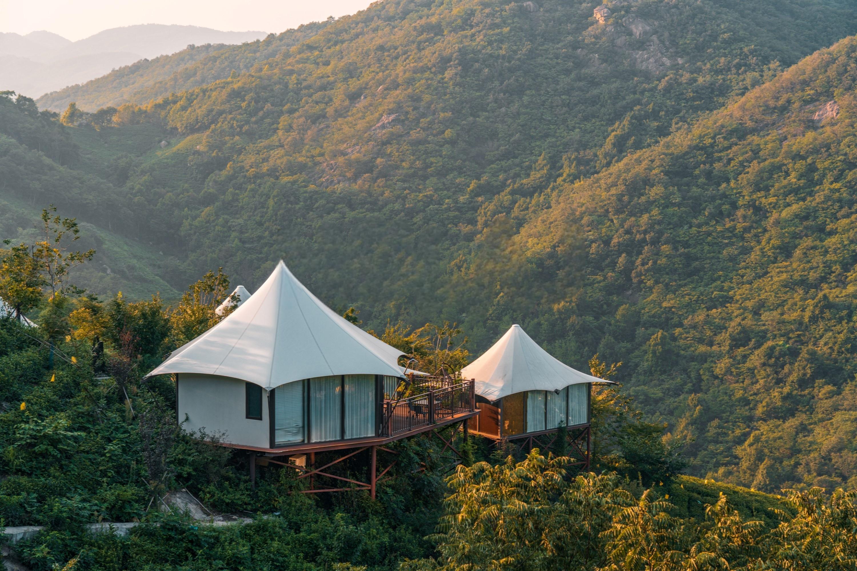 **生态旅游篷房**:是生态旅游景区中不可或缺的一部分。它可以作为游客休息、娱乐的场所,也可以用于举办各种文化活动。生态旅游篷房的外观设计注重与周边环境的协调性,采用环保材料制作,体现了生态旅游的理念。