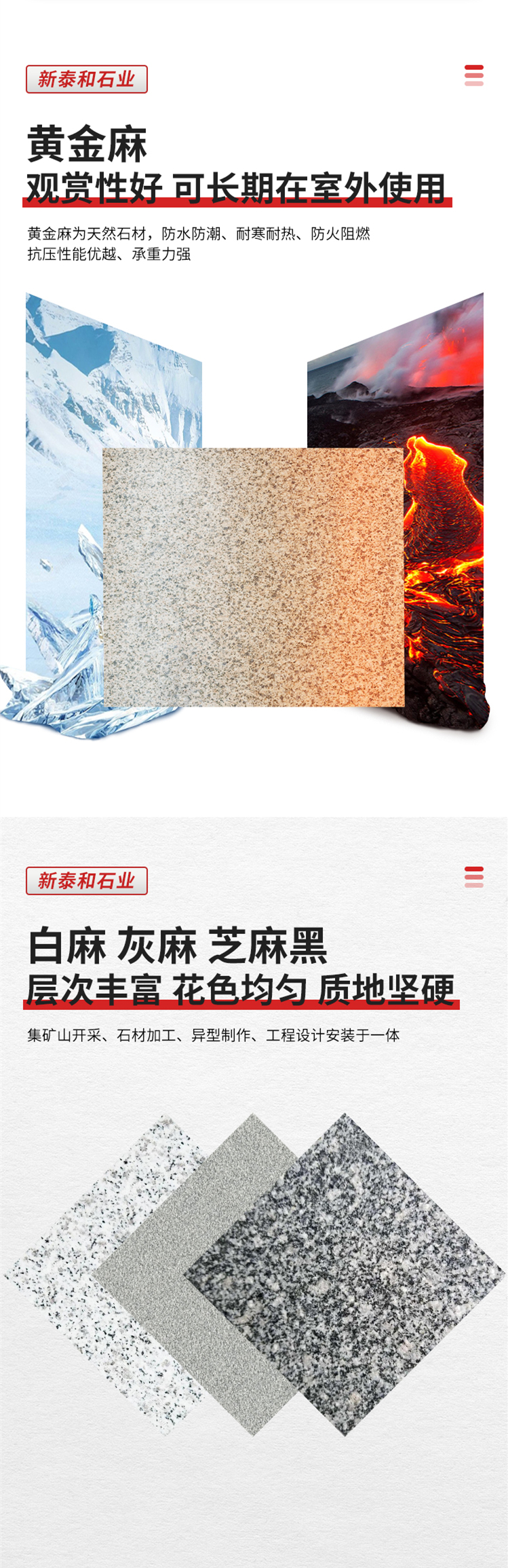在产品质量和性能方面,青岛新泰和石业有限公司一直秉持严选用料、把守细节的原则,确保品质始终如一。其生产的石材层次丰富、花色均匀,质地坚硬,具备防裂防滑的特性。精细的工艺使得产品支持定做,结构稳定且可塑性强,同时质量有保障,耐磨耐腐。而且公司的产品品种齐全,破损包赔,规格丰富,能够满足不同客户的多样化需求。