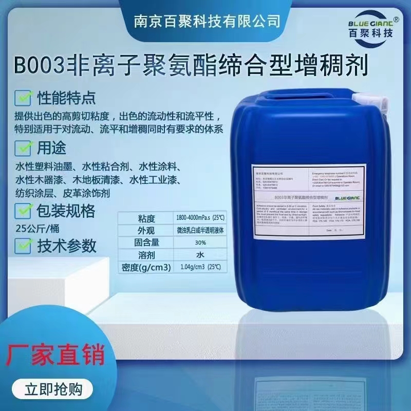 南京百聚科技有限公司的主营产品丰富多样,涵盖了乳化剂、消泡剂、润湿剂、流平剂、增稠剂、杀菌剂、分散剂、成膜助剂、特殊功能单体、水性增粘乳液、水性蜡乳液、后处理助剂等。其中,增稠剂系列产品更是公司的一大特色,包括碱溶性丙烯酸增稠剂、油性增稠剂、水性增稠剂、聚丙烯酸酯增稠剂、聚氨酯缔合增稠剂等。