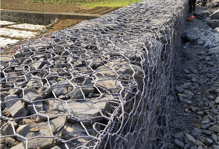 铅丝笼以双绞合六边形金属网组装成箱体,填充石块后形成透水、柔性防护体系,适应复杂地形需求。网片通过绑扎丝或环扣连接,部分设计采用模块化装配工艺提升施工效率。孔隙结构可促进水体交换及生物栖息,表面覆土后植物生长能固土防蚀,兼具生态功能与工程防护特性。