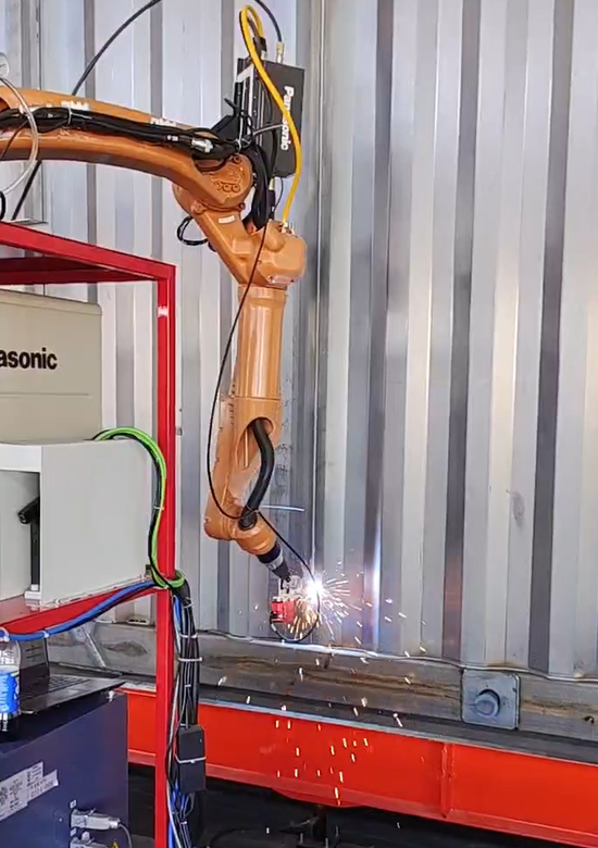波纹板自动焊接设备同样具备自动跟踪焊缝、操作简单、可选位焊接、多机协同、流水线设计的特点。其配套设备有组焊工装、定位压紧输送焊接工装、翻转工装、上下料及码垛专机,应用于集装箱侧板、挂车厢板、钢结构波腹板等连续规则的角焊缝。