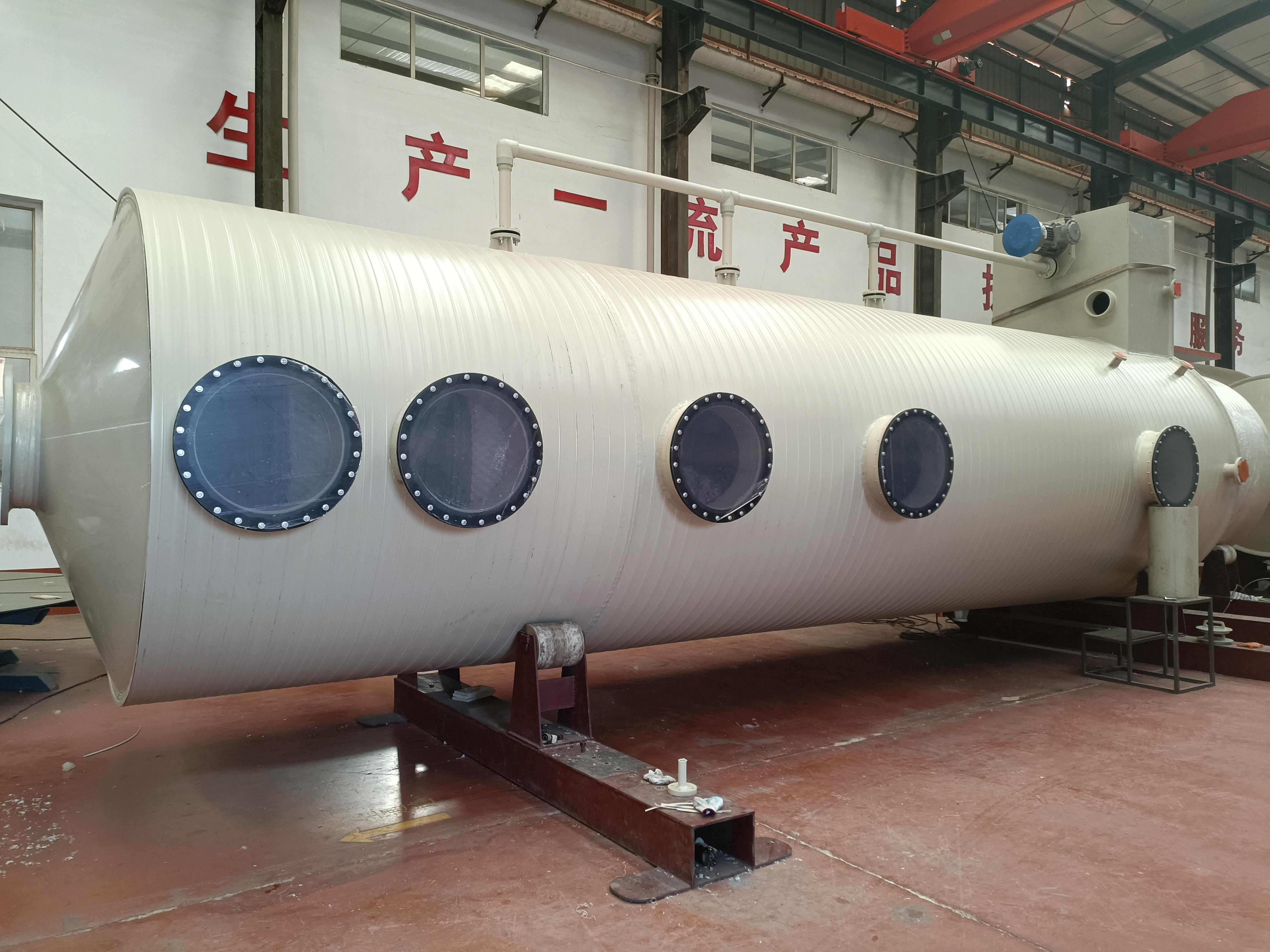PPH废气洗涤塔也是公司的重要产品。PPH材质使得洗涤塔具有更高的强度和更好的耐温性能。在废气处理过程中,PPH废气洗涤塔可以通过喷淋等方式,将废气中的有害物质溶解在洗涤液中,从而达到净化废气的目的。它适用于多种工业领域,如化工、制药等行业的废气处理。