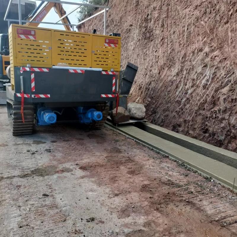 农田边沟滑膜机和沟渠滑膜机在农田建设和市政排水等方面有着广泛的应用。它们能够快速、高效地完成边沟和沟渠的施工,保证排水系统的畅通。在堤坝护坡摊铺、市政排水沟建设等工程中,这些设备也能发挥重要作用。