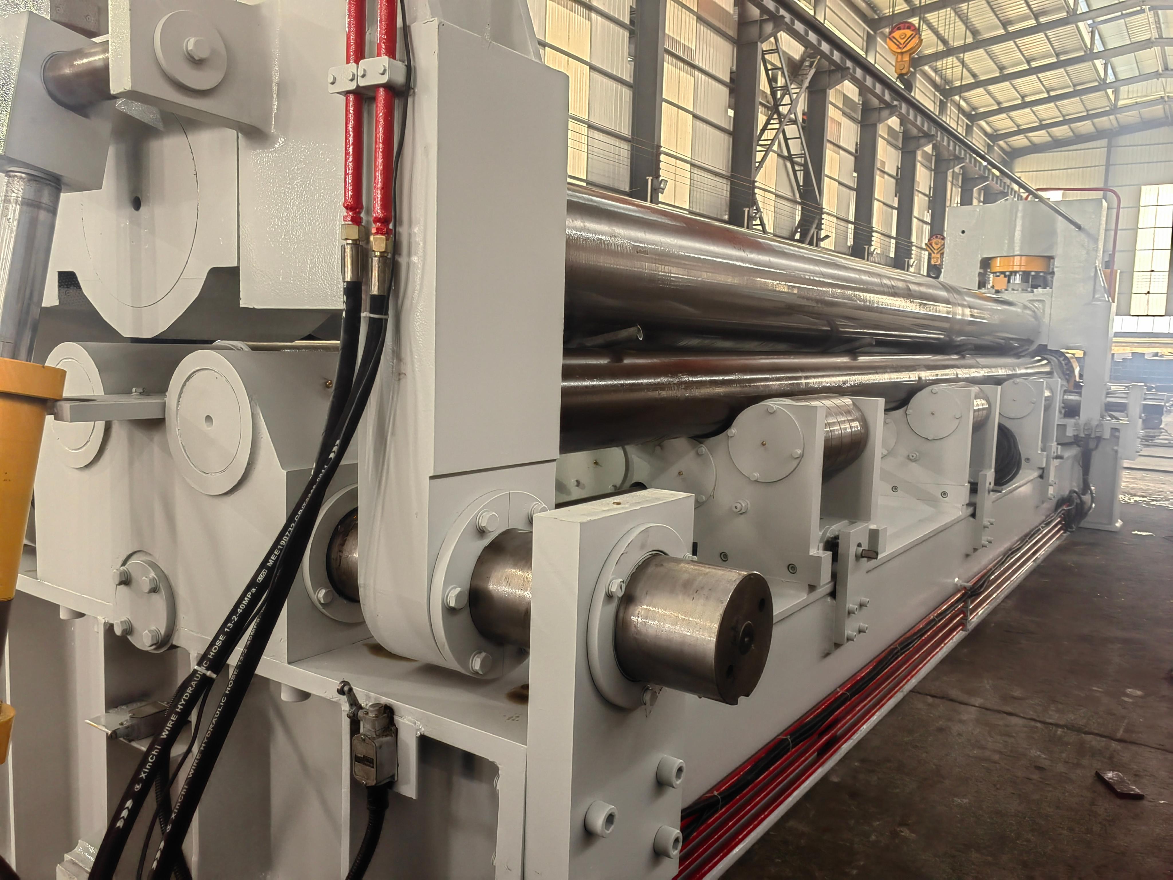 承载能力强:机架和辊轴采用高强度钢材制造,使得卷板机能承受厚板、高强度板材的压力,适用于不同厚度板材的卷制。无论是较薄的铝板,还是较厚的钢板,都能轻松应对。
