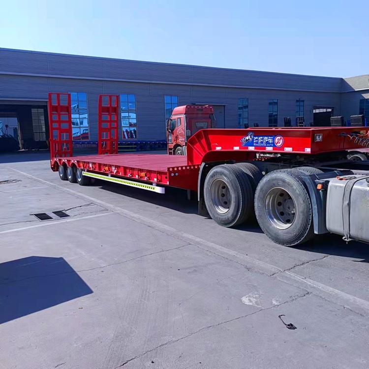 平板半挂车:该公司的平板半挂车设计合理,板面平整,能够方便地装载各种形状和尺寸的货物。平板半挂车的轮胎采用了高品质的橡胶材料,具有良好的耐磨性和抗老化性能,能够适应不同的路况和气候条件。同时,平板半挂车的悬挂系统经过优化,能够有效地缓冲路面的颠簸,提高货物运输的安全性和舒适性。它广泛应用于建筑材料、机械设备等货物的运输。