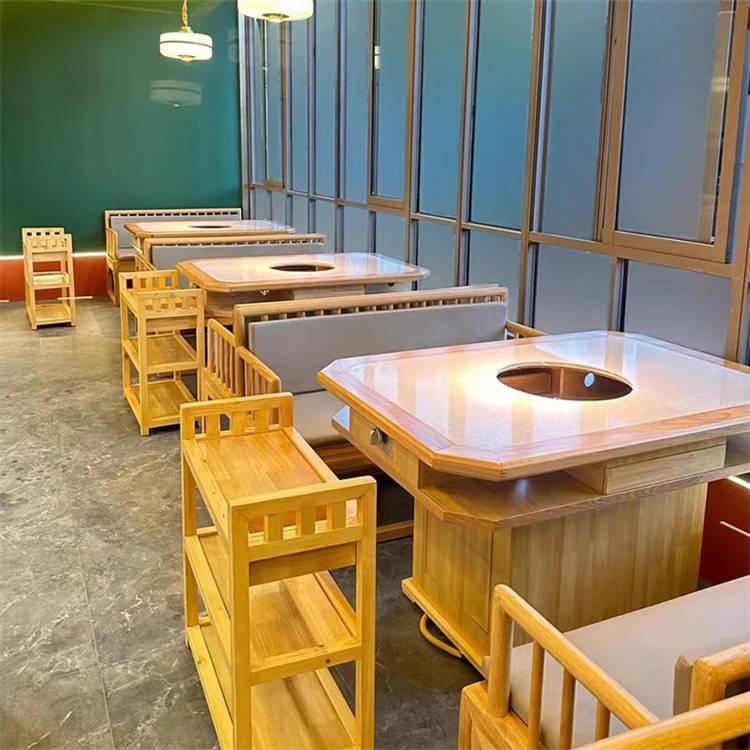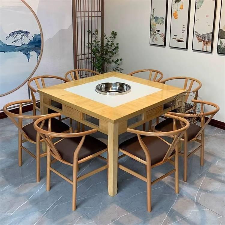 火锅桌椅也是重庆亿天家具制造有限公司的主打产品之一。它采用实木 + 大理石嵌入式电磁炉,可精准控温,有多档调节功能,桌面承重≥80kg,能满足多人用餐的需求。关键材质选用北美白蜡木等优质实木框架,搭配天然大理石台面,使用环保水性漆,既美观又环保。在安全设计上,电磁炉有自动断电保护,边角圆润设计,还有防水防烫处理,保障了顾客的使用安全。适用于火锅店、中餐馆等,无论是新中式风格还是仿古风格,都能为餐厅营造出独特的氛围。