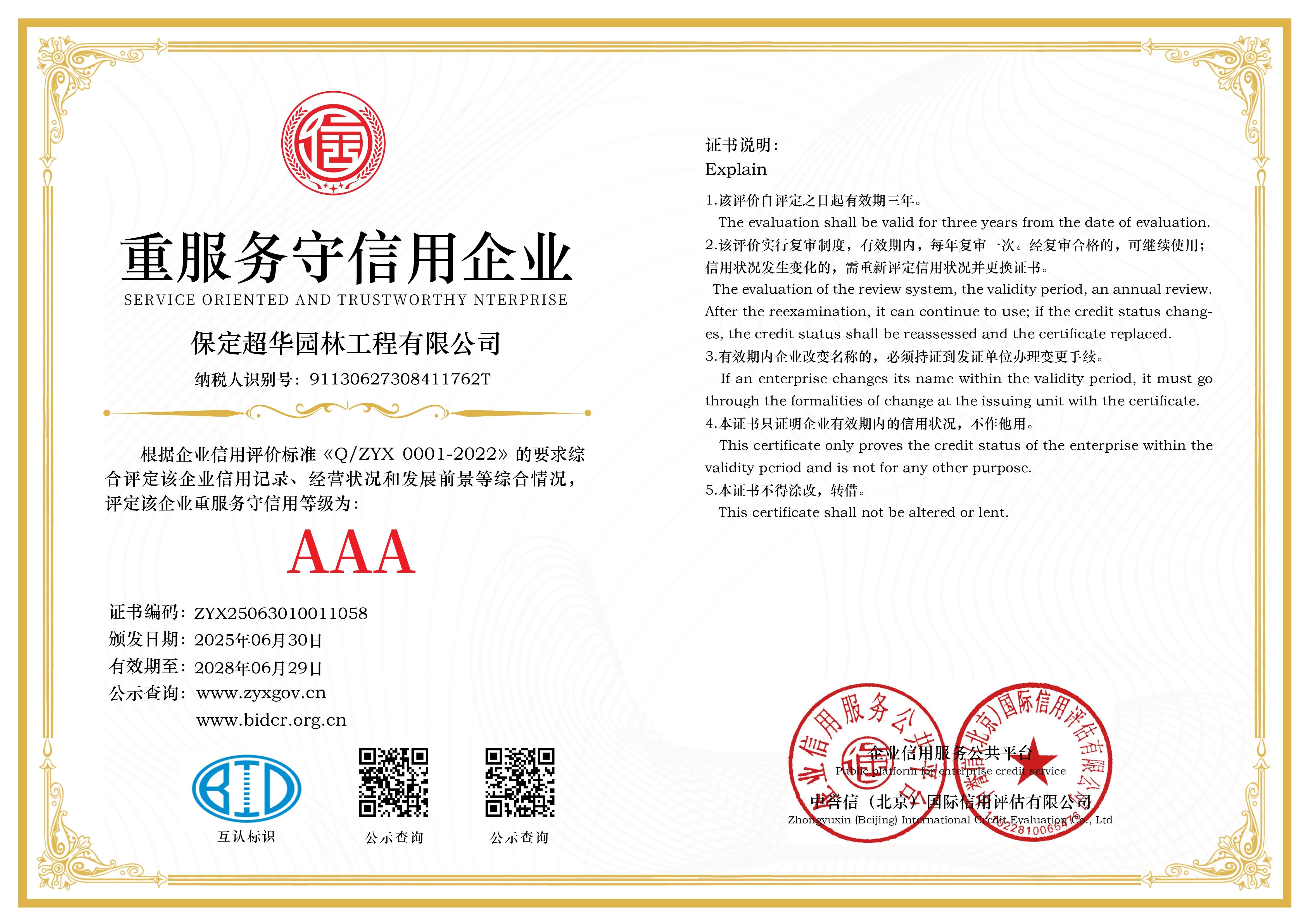 保定超华园林工程有限公司还拥有过硬的荣誉资质。公司拥有全省一级园林工程资质,获评“河北省科技型中小企业”“质量服务信誉AAA级企业”。在行业荣誉方面,斩获了“迪拜国际水景设计金奖”“中国景观工程创新奖”“园林工程优质奖”等众多奖项,作品入选“全国十大创意水景案例”,连续三年在行业品牌评选中表现出色。并且多次被评为“诚信经营示范企业”“文旅工程优质供应商”,以合规经营与优质服务获得了多方的信赖。